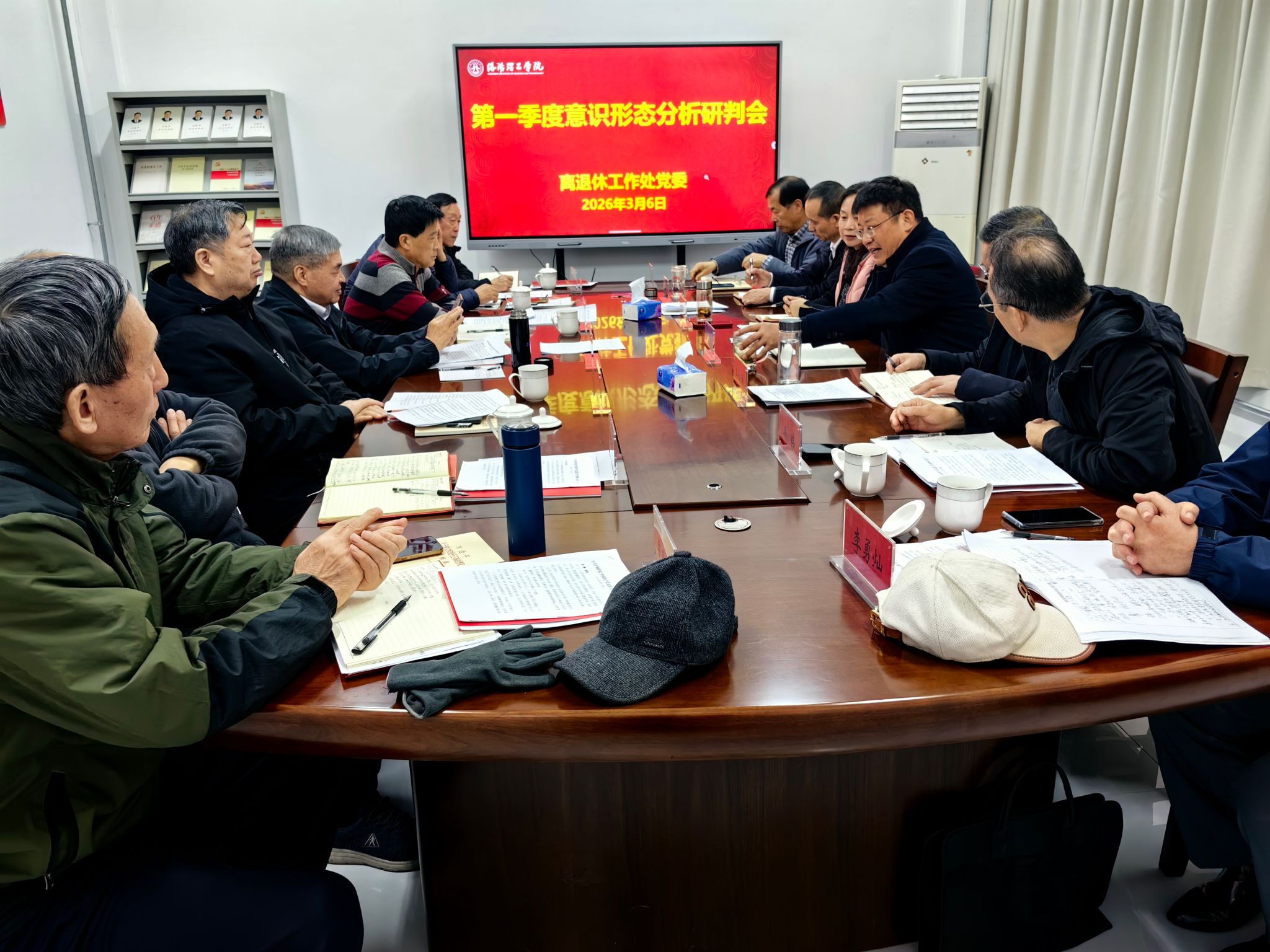 随后,召开意识形态分析研判会,与会人员围绕当前离退休领域意识形态工作形势、退休党支部思想建设、老同志思想动态、网络舆情风险等方面进行深入分析研判。