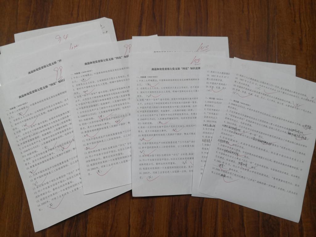 10月6日下午,离退休处党委第七党支部在珠江路党员之家开展“四史”知识竞赛答题活动。经过了一段时间的准备,大家答起题来信心满满,并取得了不错的成绩。