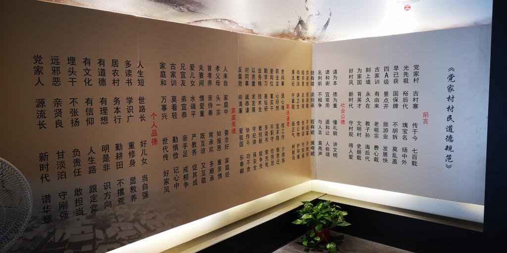 党家村设立的“家风园”,是当地政府倾力打造的廉政文化“一轴四点”工程之一,园区内共设置布展了7个主题教育教室,主要包括村史文化室、村规家训室、牌匾门楣室、传统家训室、休闲阅览室、茶话室、文化产品室等多种体验活动展室,可为参观人员提供家训国学讲堂、诵读家训、摹拓家训等多种体验活动,引导广大民众正家风强思想,从中汲取精神养分。