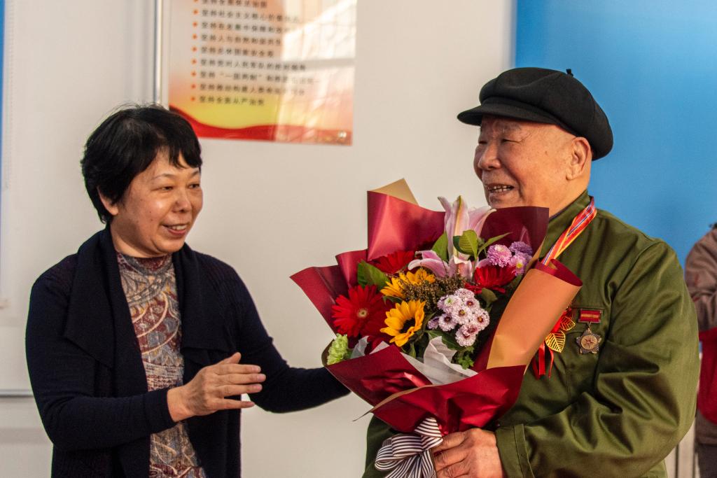 10月26日,在纪念中国人民志愿军抗美援朝出国作战70周年之际,离退休处党委七支部联系工作实际,精心策划,组织了“学习革命英雄,做好薪火传人”主题党日活动。为我校参加抗美援朝战争的7位老战士举行隆重的颁奖仪式,通过慰问、座谈、赠送颁奖照片等活动,学习“身边榜样”,争做时代先锋。党日活动分四个环节: