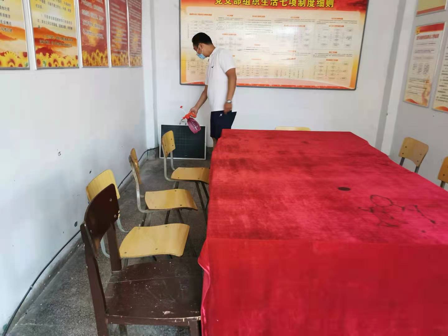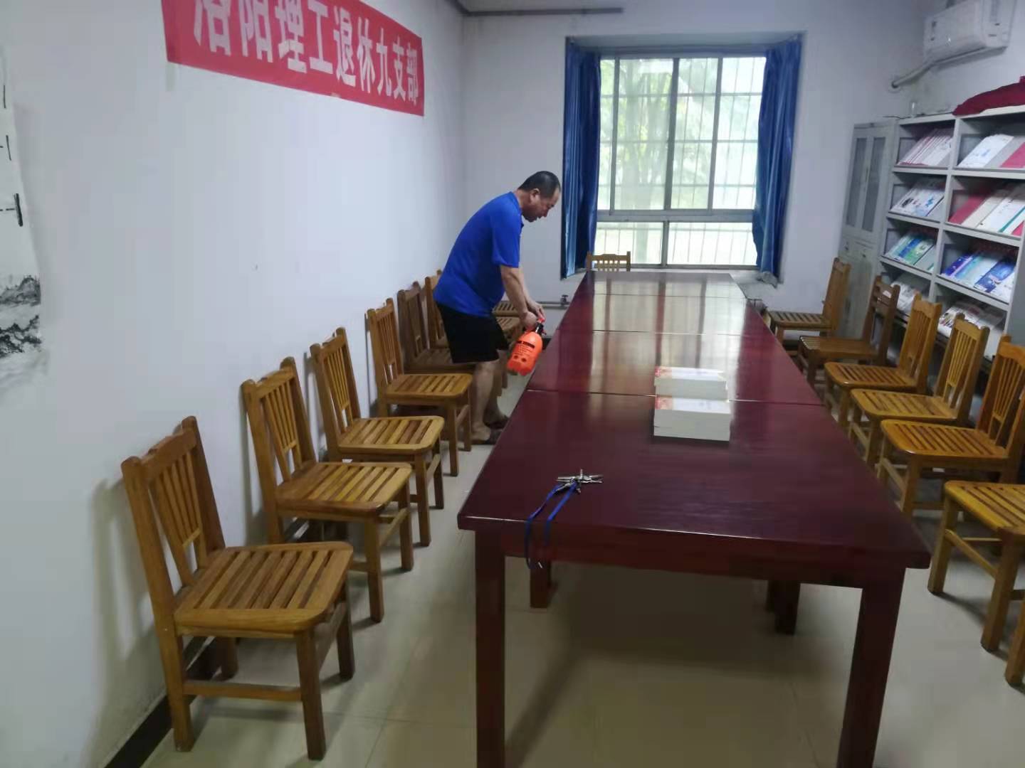 应上级要求,8月2日下午,离退休工作处五个活动室紧急关闭。8月3日上午,六位活动室管理员开始对活动室进行打扫、消杀,对活动室全方位无死角进行清洁。
