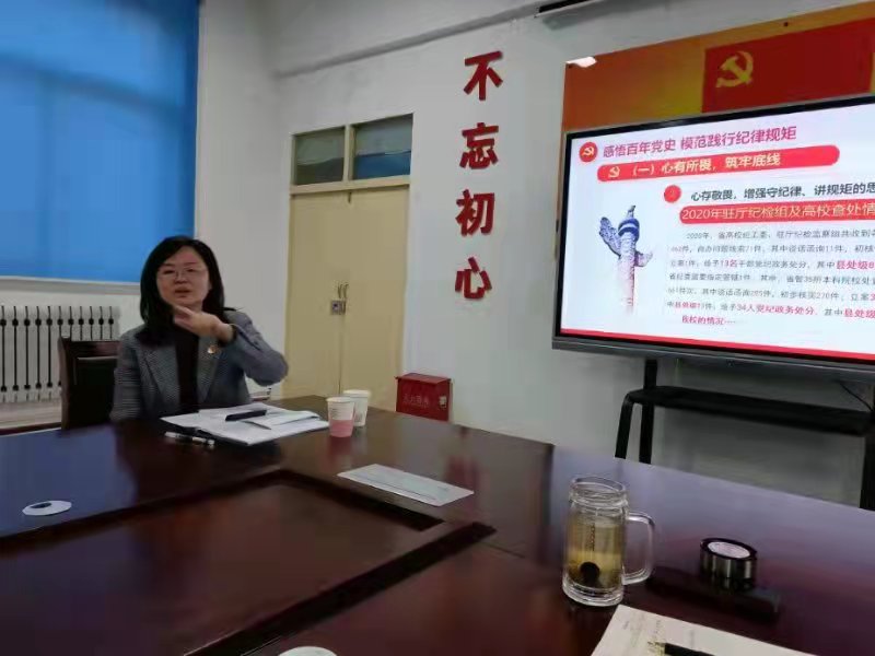 王莉以“从百年党史中感悟规矩力量,做“讲政治、守纪律、懂规矩”模范践行者”为主题,结合纪委工作与学校情况,与职工们进行了交流。一是感悟百年党史,深刻理解纪律规矩重要性,结合十九届六中全会精神,围绕“全面从严治党”论述了讲政治守纪律懂规矩的重要性;二是感悟百年党史,准确领会纪律规矩内涵,分项讲解了党的六项纪律要求;三是感悟百年党史,模范践行纪律规矩,告诫全体党员要做到心有所畏,筑牢底线,行有所止,坚守底线,修身律己,不越红线。