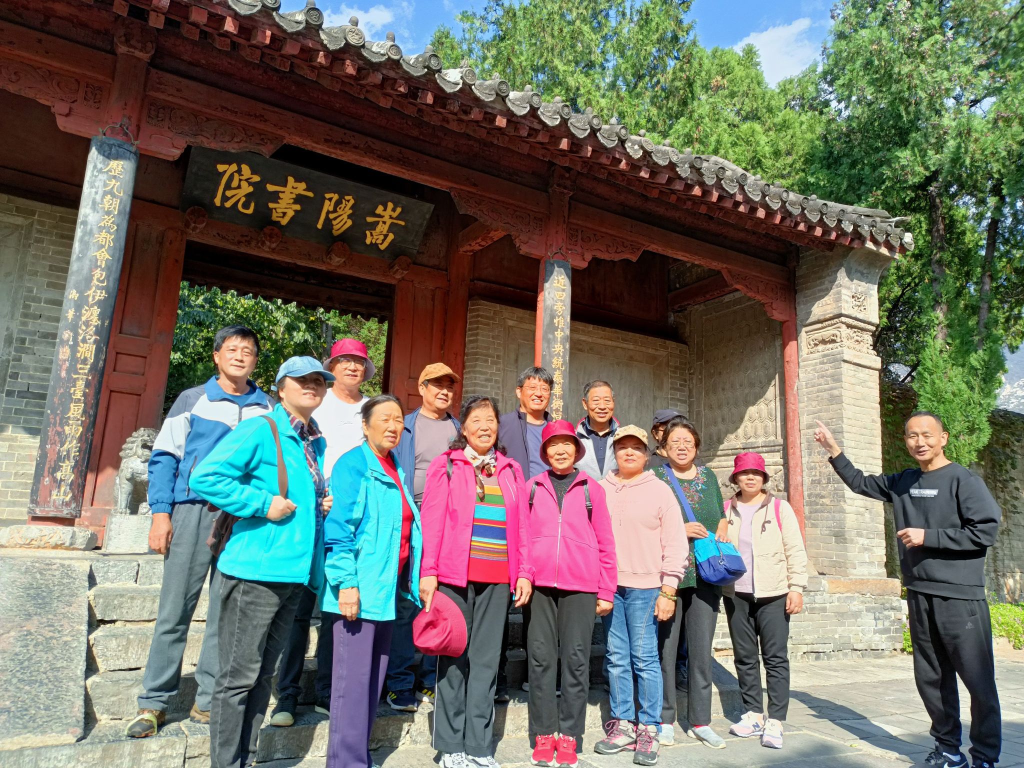 金风送爽,秋景宜人。在中岳嵩山太室山,老同志们欣赏着艳阳下的秋日美景,畅谈着中原大地的巨大变化,分享着生活的幸福和强身健体秘笈,欢声笑语不断。中华文明,源远流长。在世界文化遗产嵩阳书院,大家聚精会神聆听讲解,赞叹精美碑刻艺术,探究中国古代书院建筑、教育制度以及儒家文化。往返途中,一路欢唱一路歌,充分展示我校离退休教职工健康向上、充满活力的精神风貌。