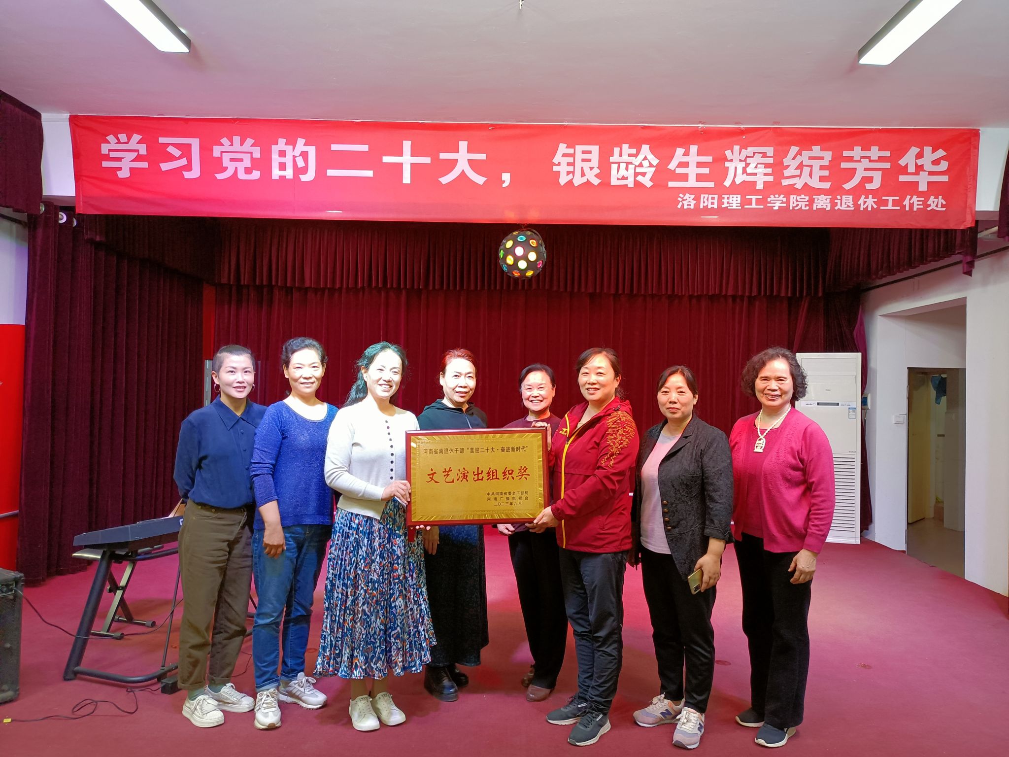 自此项活动启动以来,离退休工作处高度重视,精心组织,认真制定参赛方案。根据洛阳理工学院离退休干部文艺宣讲小分队节目特点,把参赛视频分为“喜迎党的二十大,舞动夕阳红”、 “走进学校社区,深入田间地头” 、“喜迎党的二十大,颂歌献给党” 、“载誉再出发,红心永向党”四个篇章,呈现出一个美轮美奂的演出空间视频。文艺汇演在舞蹈《幸福中国一起走》中拉开序幕,老同志们阵容整齐、精神饱满。舞蹈《万疆》磅礴大气、舞姿灵动、热烈奔放……精彩的表演赢得了现场观众的阵阵掌声。