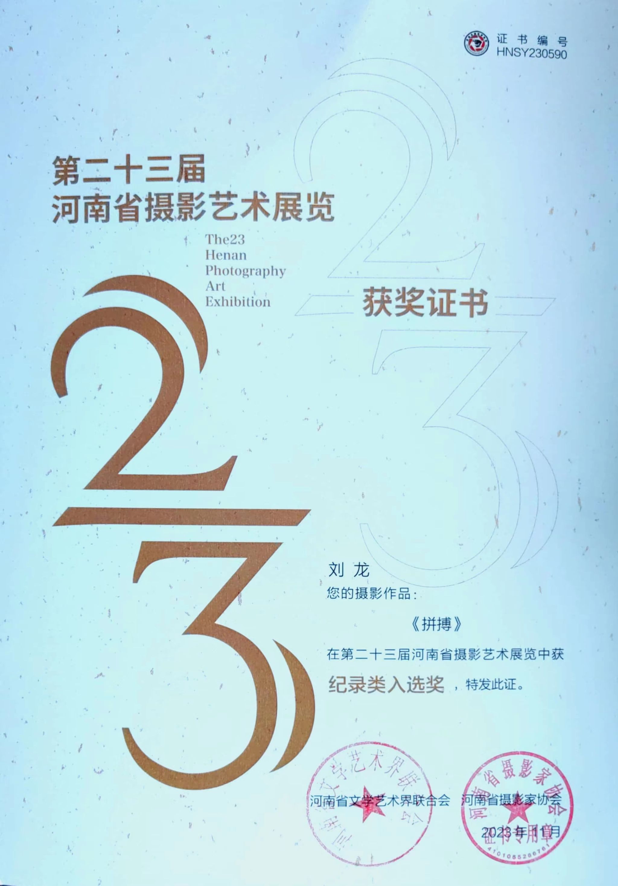 11月26日,由河南省摄影家协会主办的第二十三届河南省摄影艺术展览在河南省文联开幕。我校退休教师刘龙的摄影作品《拼搏》获纪录类入围奖。