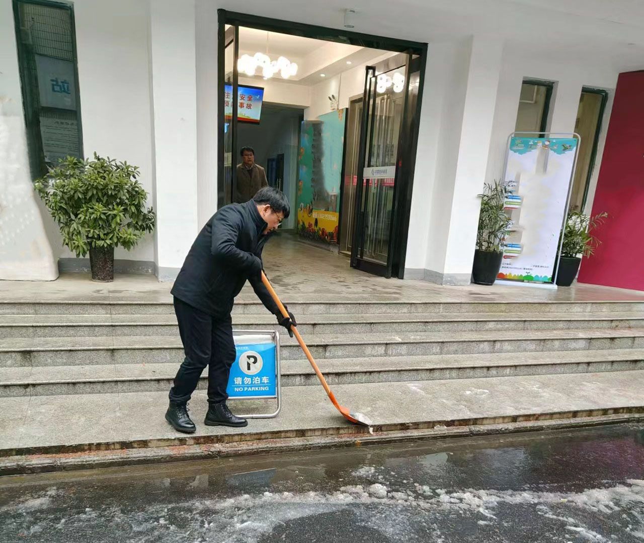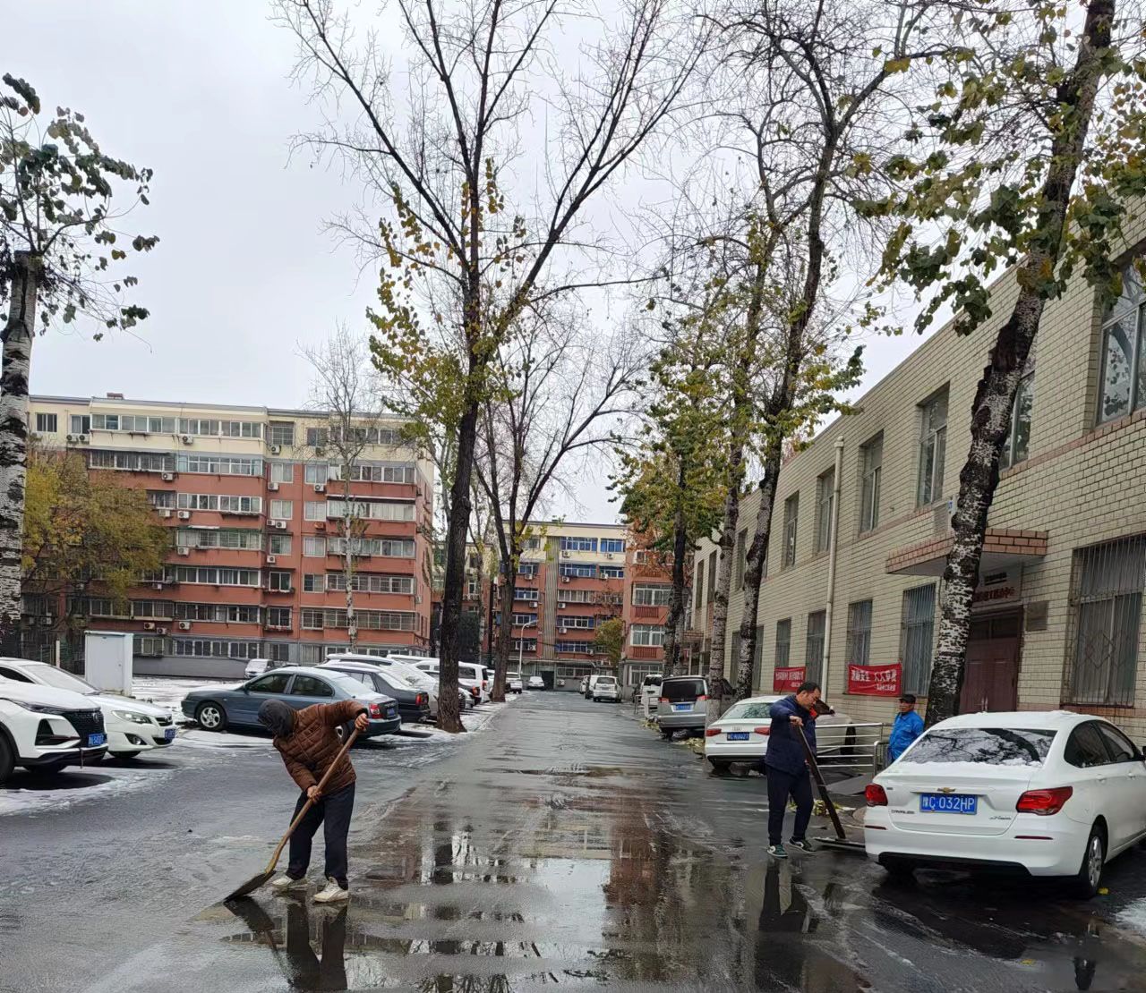 担心路滑,老同志们摔倒,曹良奎处长带头在活动室门前扫雪,其他片区同志也纷纷行动起来,打扫路面积雪,或者铺上防滑垫,排除各种隐患,只为保障老同志的安全。
