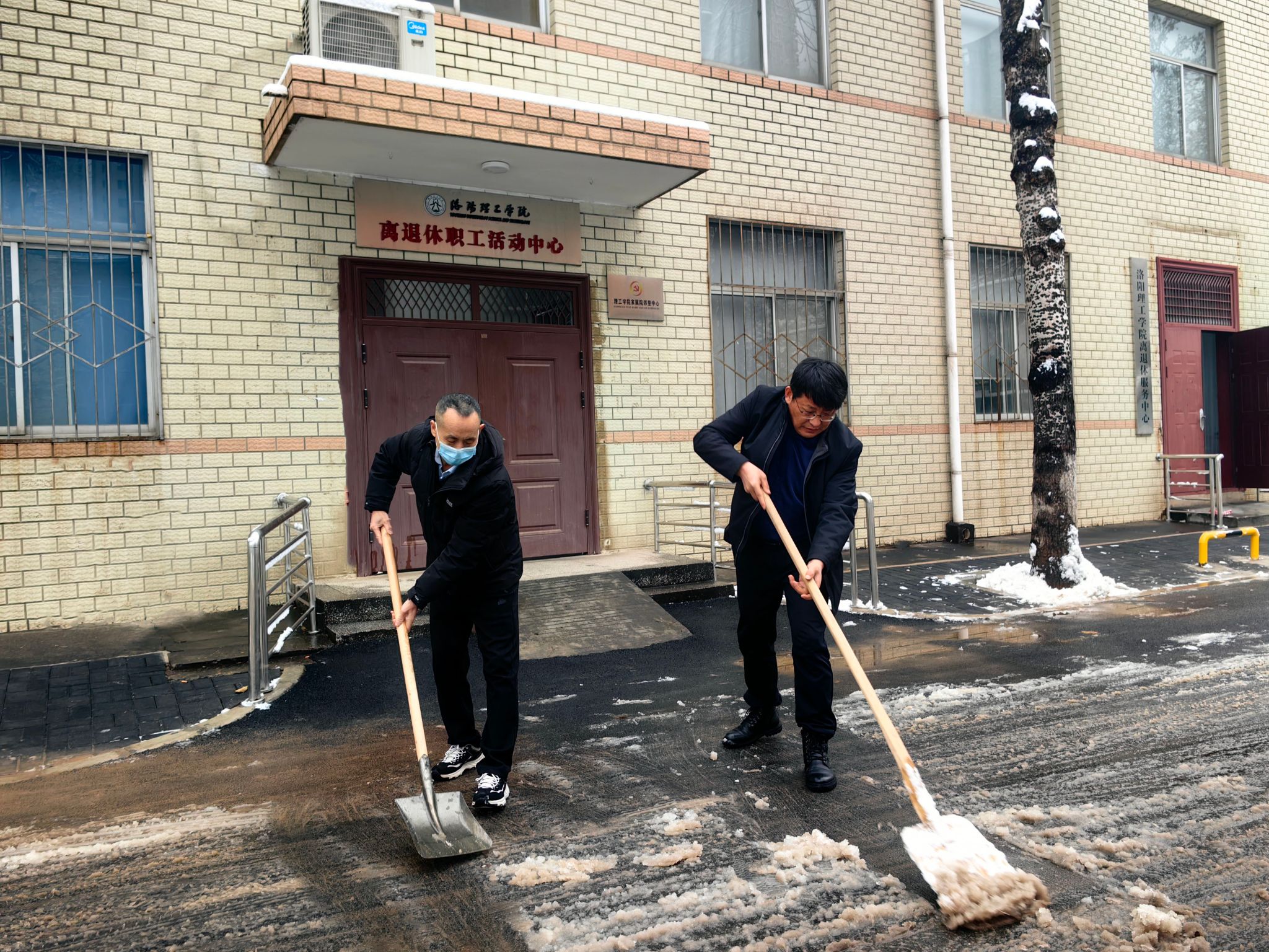 突如其来的大雪,给出行带来很多不便。为消除安全隐患,方便老同志出行,1月16日一大早,离退休工作处全体人员就带着工具,到活动中心旁边的大道积极进行清理积雪活动。
