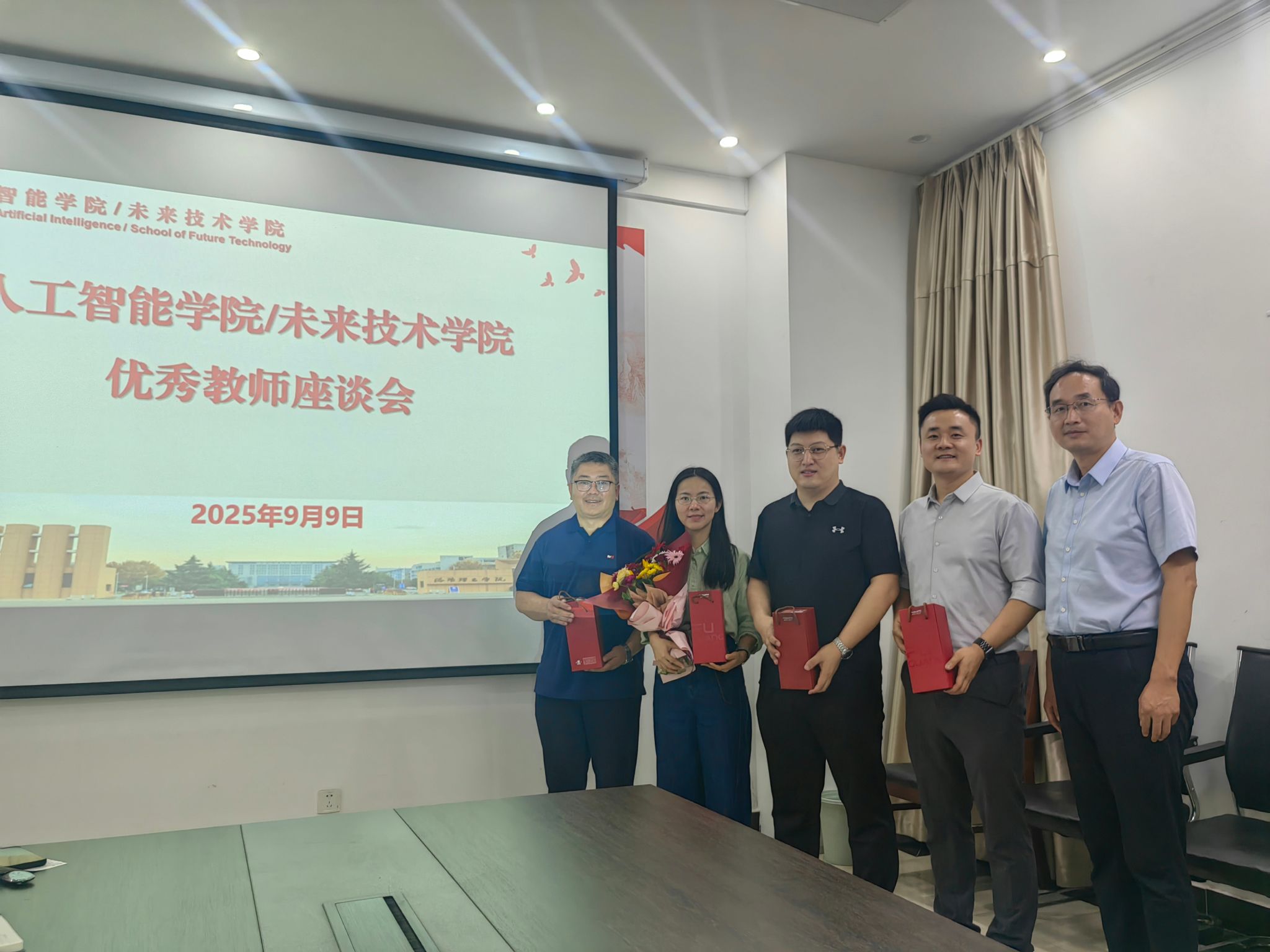 武建伟以“坚守育人初心,争做‘四有’好老师”为主题,带领全体参会人员深入学习习近平总书记关于教师队伍建设的重要论述,要求大家牢记“有理想信念、有道德情操、有扎实学识、有仁爱之心”的标准,将立德树人根本任务贯穿教育教学全过程。他回顾了近六年来教师节的主题,结合内涵和实例,引导教职工深刻理解新时代教育工作者的使命与担当,勉励大家以教育家精神为指引,在教学科研、人才培养、社会服务等方面继续贡献新的力量。他要求:一是要讲初心,全体教职工要始终牢记教育初心,以爱心与责任心守护学生成长,践行育人使命;二是要讲学习,持续加强政治理论与专业知识学习,紧跟人工智能领域发展步伐,不断提升综合素养;三是要讲创新,在教学方法、科研思路、管理模式上积极探索创新,以创新驱动学院教育教学事业高质量发展。