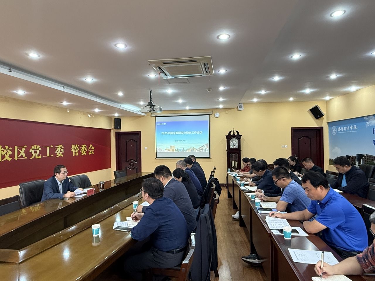9月29日下午,副校长李传锋在开元校区图书馆307会议室主持召开2025年国庆假期安全稳定工作会议。我院和国有资产管理处、基建处、计算机学院/软件学院、信息化技术中心等单位领导班子成员参加会议。