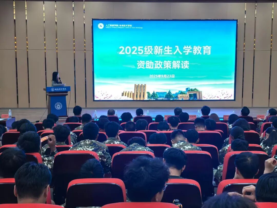 9月23日晚,我院学工办副主任王思阳在开元校区图书馆四楼报告厅为2025级新生作“资助政策解读”专题报告。