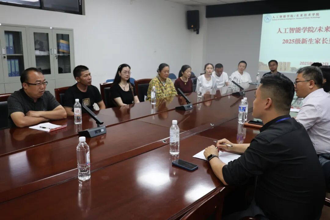 学工办副主任王思阳围绕学生日常管理、学风建设、奖助贷等方面内容进行讲解,细致说明学院在保障学生学习生活、促进学生全面发展上的各项举措,解答了家长们对学生在校生活管理的疑问。就业办副主任常玉婷聚焦学生就业,结合人工智能行业态势,介绍学院针对该专业的就业指导体系,建议大一新生入学即树立职业生涯规划意识,后续学院会持续开展针对性就业指导、及时推送优质招聘信息,切实帮学生找准就业方向,助力学生成长成才。新生辅导员宁飞龙介绍了新生适应大学生活的方法,尤其针对人工智能专业学习难度较大的特点,给出了相应的建议。