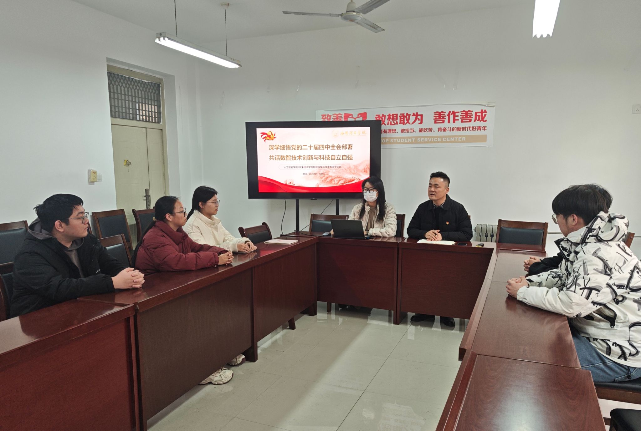 为深入学习贯彻党的二十届四中全会精神,推动理论学习与专业实践深度融合,引导学生党员在科技强国建设中勇担使命,11月20日,我院智能科学与技术专业学生党支部举行“深学细悟党的二十届四中全会部署,共话数智技术创新与科技自立自强”专题学习会。党支部书记苗超鹏、副书记卢莹莹及全体学生党员参加学习。