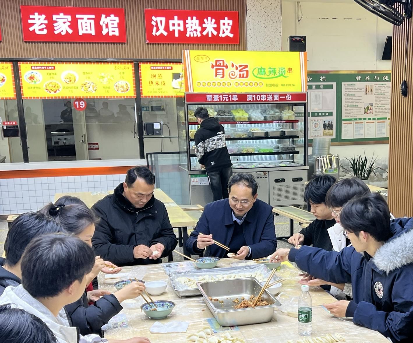 12月14日上午,我院在子衿餐厅开展“党建引领,团建护航,‘饺’上好运,研途顺畅”主题党团活动,学院领导、老师、团学干部与考研学子齐聚一堂,同包饺子,共话初心,为即将奔赴考研战场的学子们注入信心与力量。