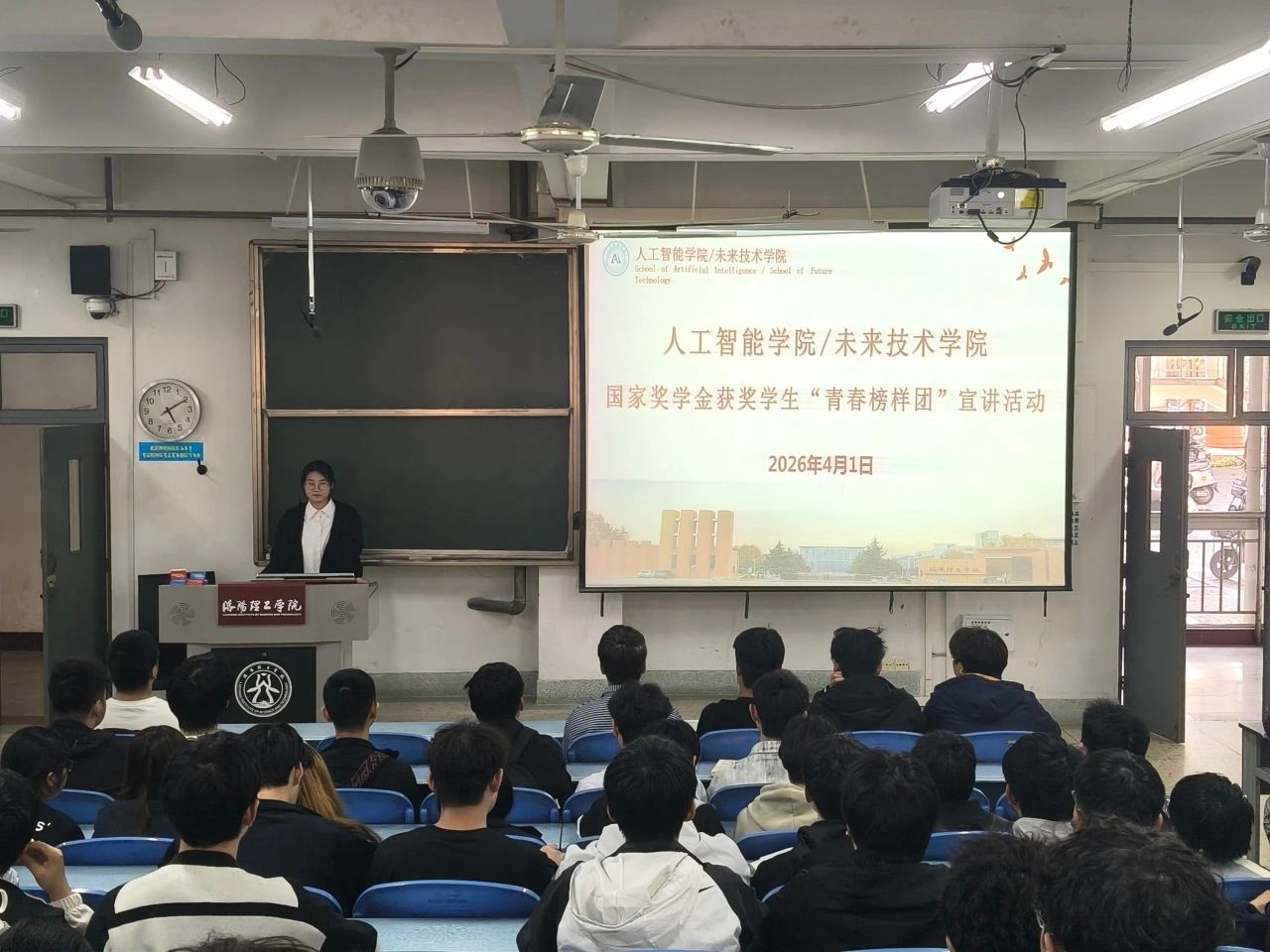 为发挥国奖榜样引领作用,深化资助育人,加强学风建设,我院“青春榜样团”国家奖学金宣讲活动于4月1日、4月3日在王城校区教学楼DE101、开元校区教学楼XC1顺利举行。国家奖学金获得者、智能科学与技术专业张沙莉同学担任主讲人,为2025级学子分享奋进经验。