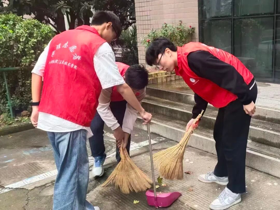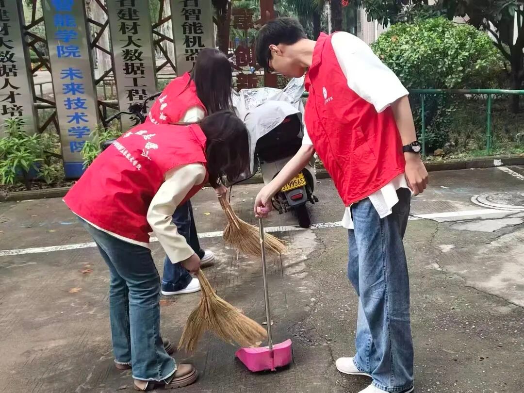 活动中,志愿者们手持清洁工具,分工协作,对周边区域进行全面清理。大家细致排查草丛、路面的垃圾,不放过任何卫生死角,以实际行动维护校园整洁面貌,并积极向过往师生宣传环保理念,保护校园环境。