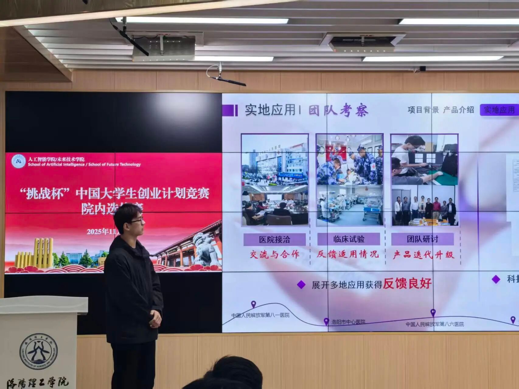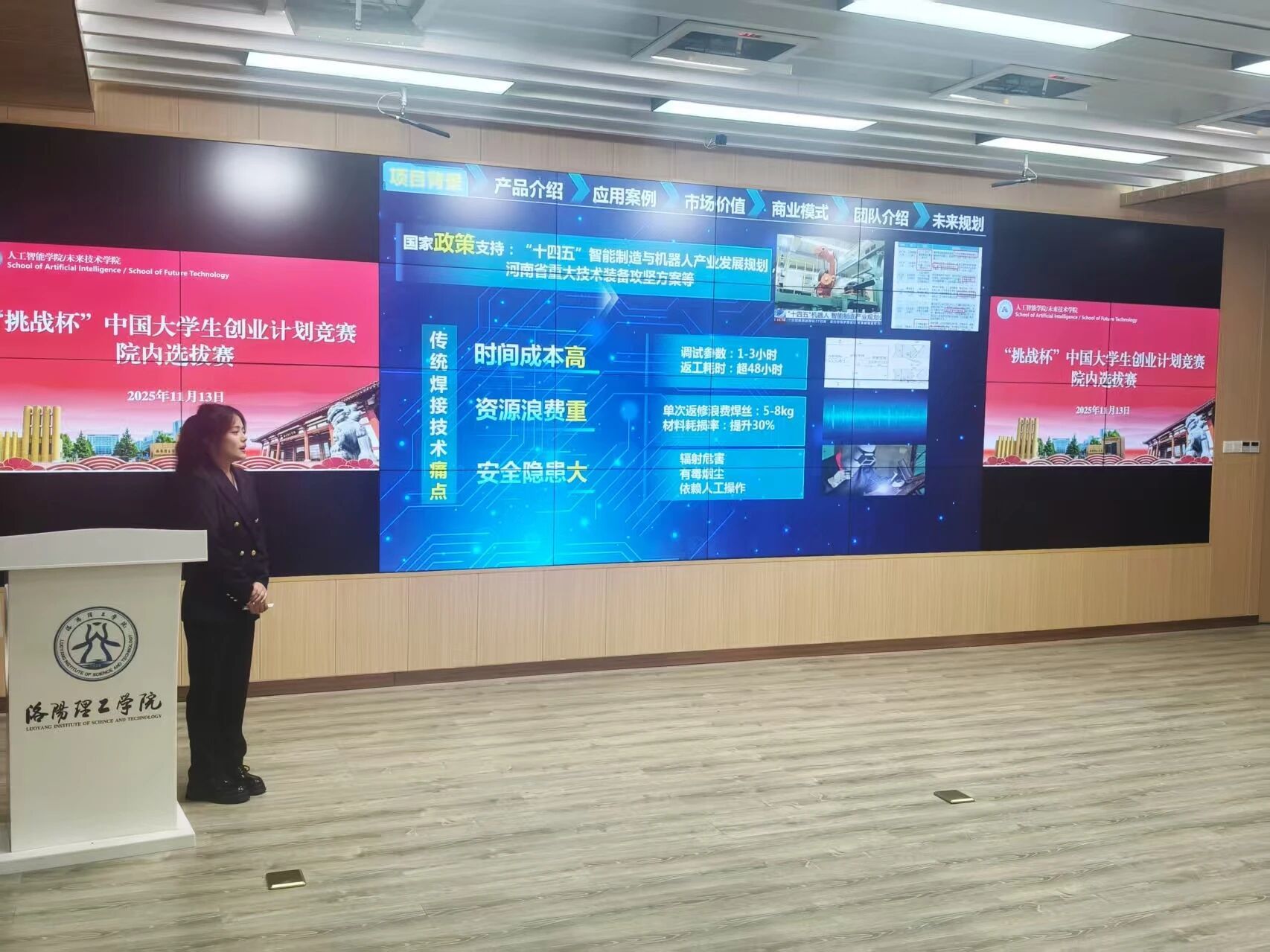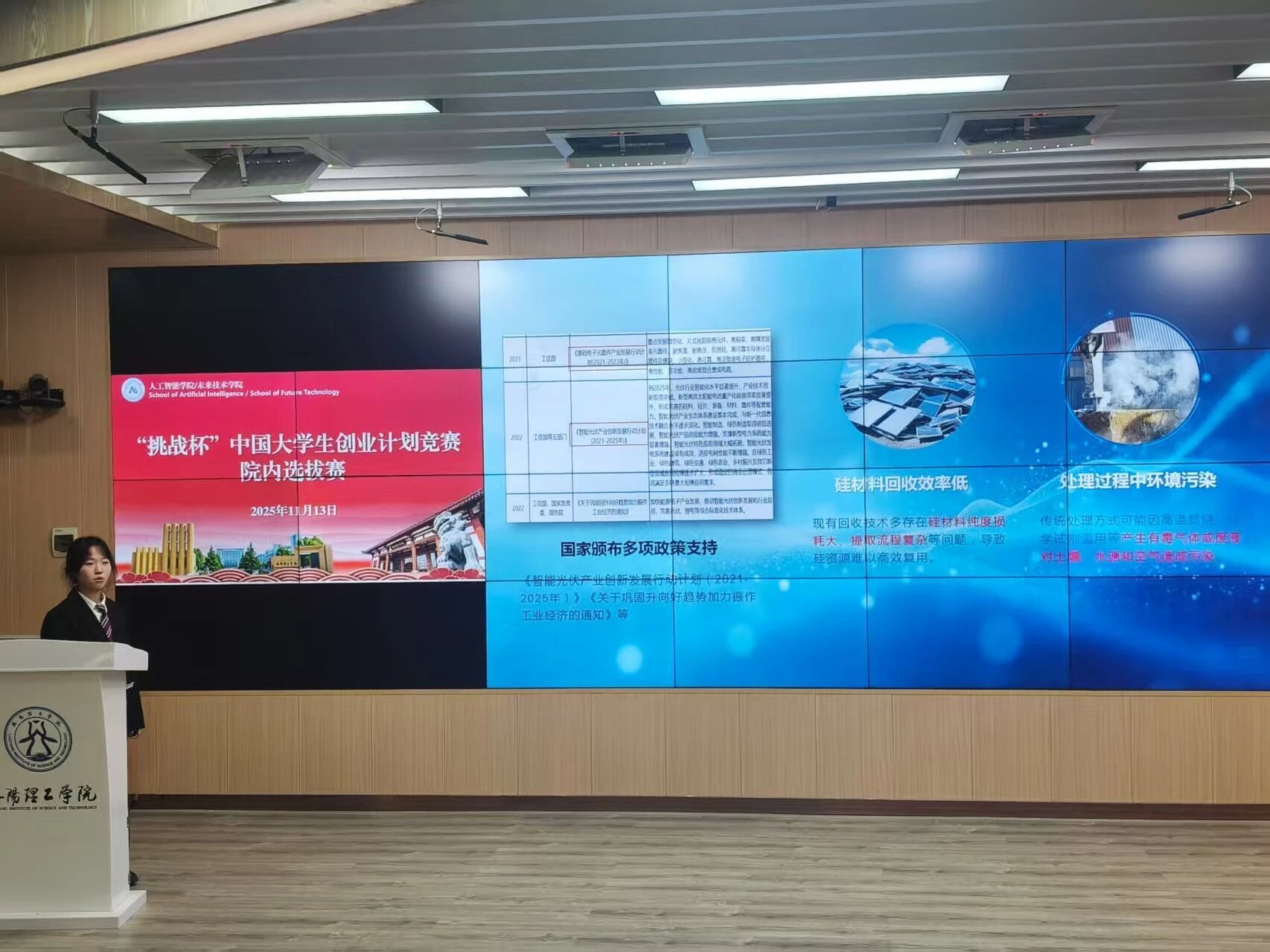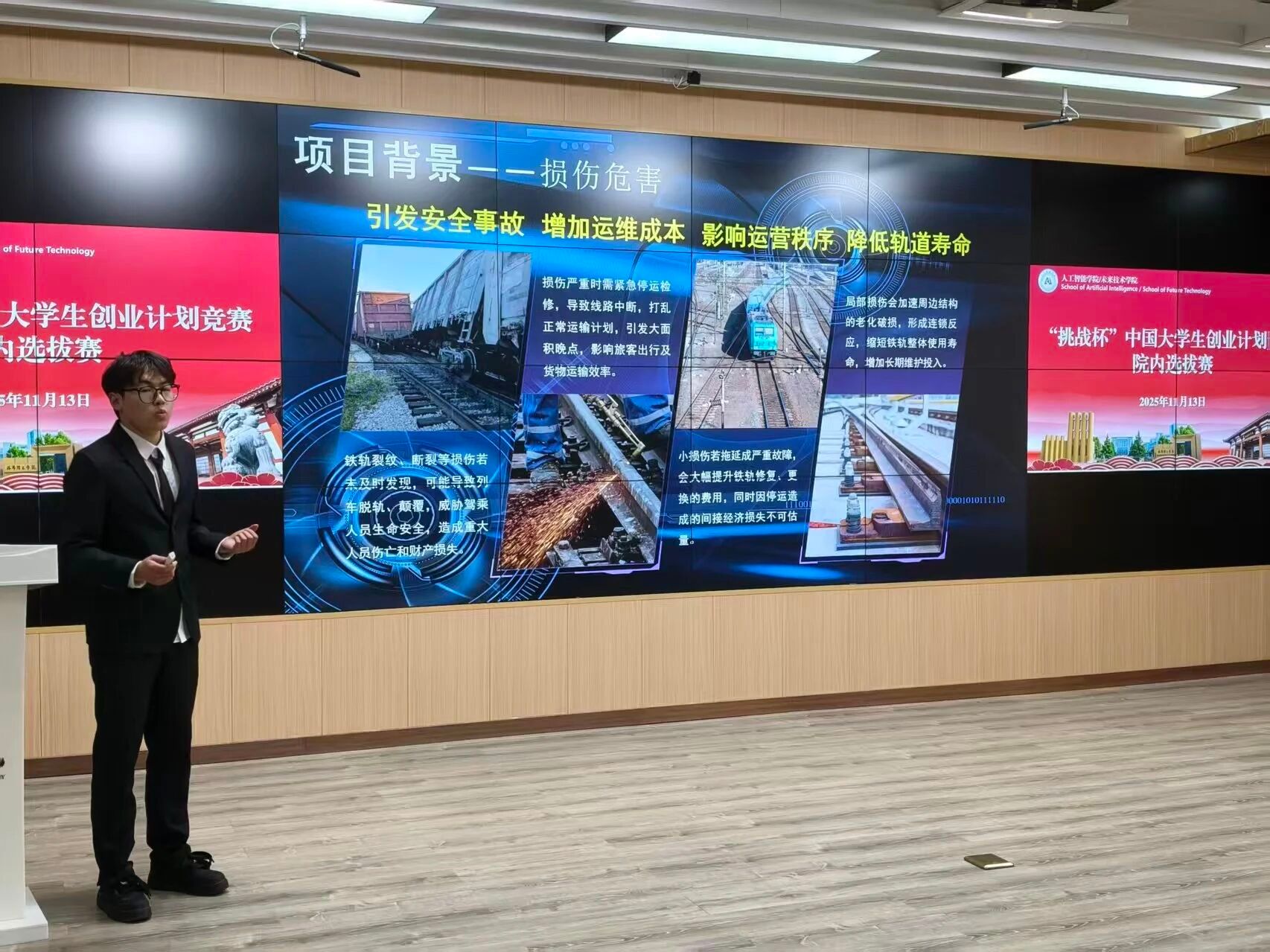 11月13日下午,我院“挑战杯”中国大学生创业计划竞赛院内选拔赛在王城校区AE507举行。比赛邀请教学秘书张扬、工业智能系主任王一鸣、教师郑玉丽及辅导员卢莹莹担任评委。来自各专业的14支参赛团队同台竞技,展现青春智慧与创新风采。