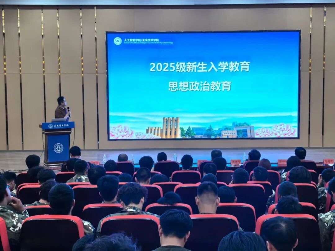 9月23日晚,我院在开元校区图书馆报告厅开展2025级新生思想政治教育活动,团委书记苗超鹏作主题报告。