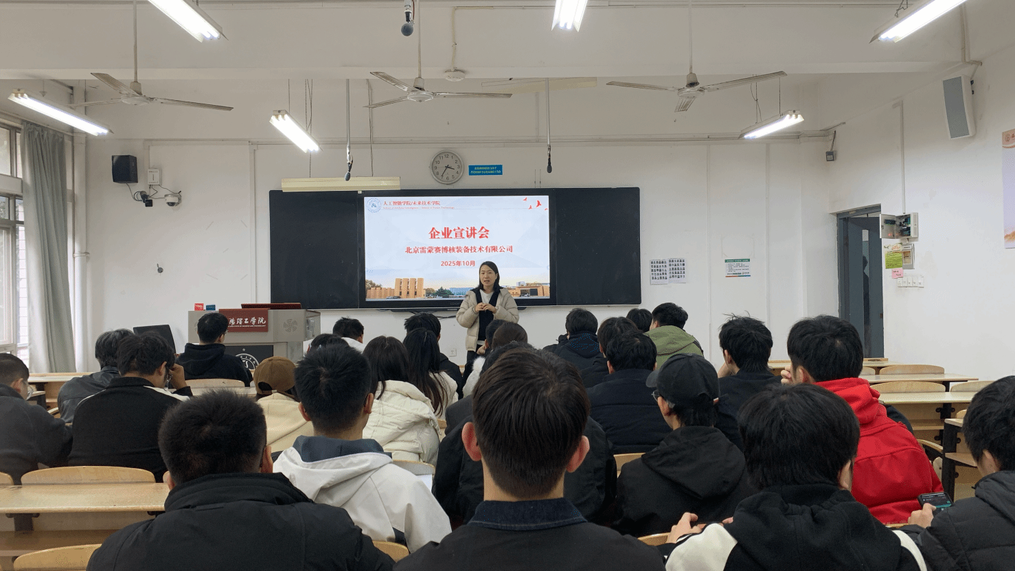 10月24日下午,北京雷蒙赛博核装备技术有限公司招聘主管王浩颖应我院邀请在王城校区公共教学楼AN204举办专场招聘宣讲会暨就业指导活动。我院就业办副主任常玉婷和30余名2026届毕业生参加。