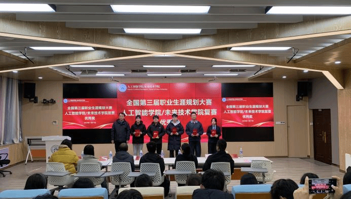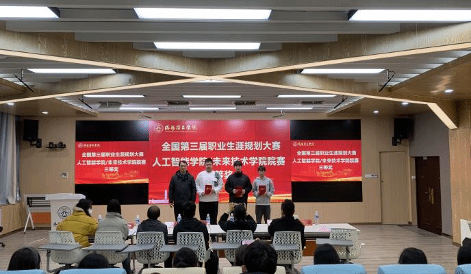 刘亚钦为获奖选手颁奖,并在肯定选手比赛成绩的同时指出,本次选拔赛不仅是一次竞赛,更是一个集展示、交流、学习于一体的平台,既检验了学生的职业规划能力,又为广大同学提供了可借鉴、可复制的成长范本,有效激发了低年级学生对学业与职业发展的早期关注,在全院营造了“人人关心规划、人人参与规划”的良好氛围。他希望学生们以赛促学、以赛促思,持续深化自我认知,主动对接国家战略和产业需求,将规划意识融入日常学习与实践中,不断提升核心竞争力,为服务国家战略、社会进步、行业发展中实现人生价值。