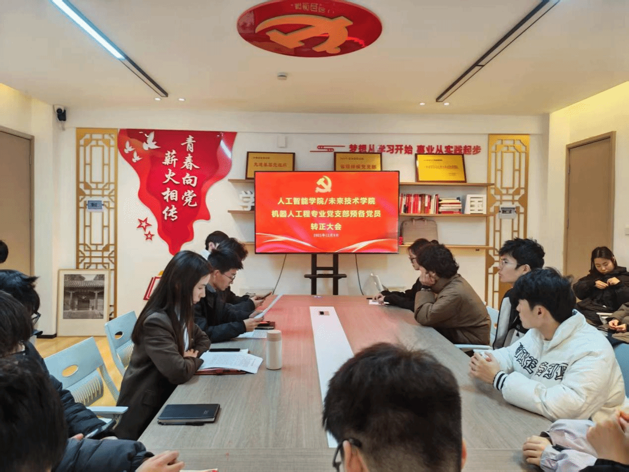 12月9日下午,我院机器人工程专业学生党支部在致实社区初心坊召开党员大会,专题讨论娄粤等6名预备党员的转正事宜。支部书记常玉婷、副书记宁飞龙和全体党员参会,共同见证这一庄严而神圣的时刻。