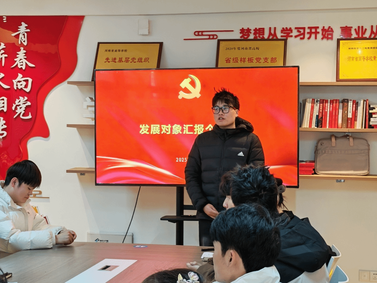 常玉婷从思想政治素质、学业成绩、社会实践参与、群众基础等方面,逐一介绍了9名发展对象在培养考察期间的表现情况,充分肯定了他们在理论学习中不断提升自我、在实践中锤炼本领、在服务中彰显担当的突出表现。