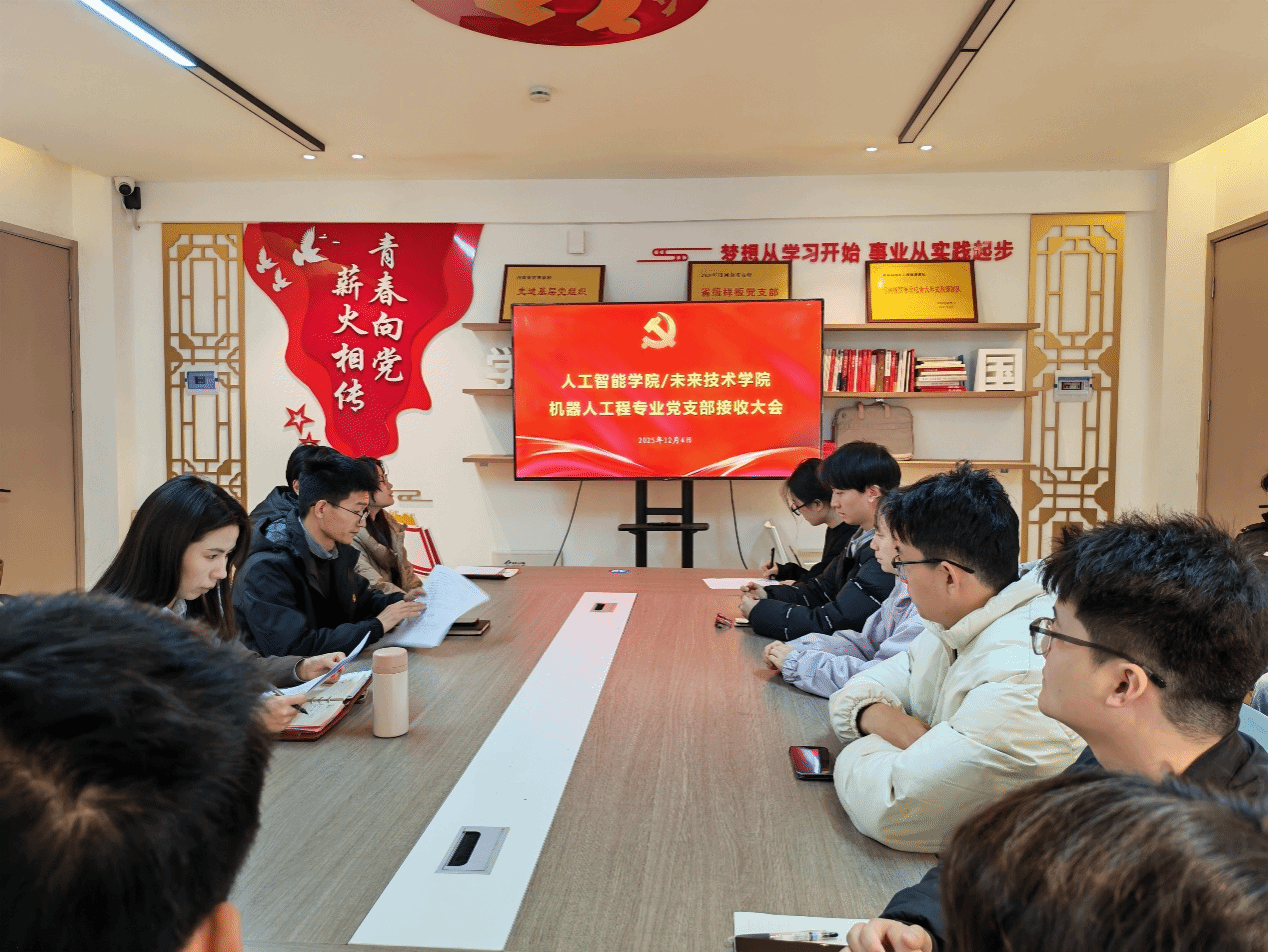 12月4日下午,我院机器人工程专业学生党支部在致实社区初心坊召开党员大会,专题讨论接收才奕涵等9名发展对象为中共预备党员。支部书记常玉婷、副书记宁飞龙和全体党员参会。