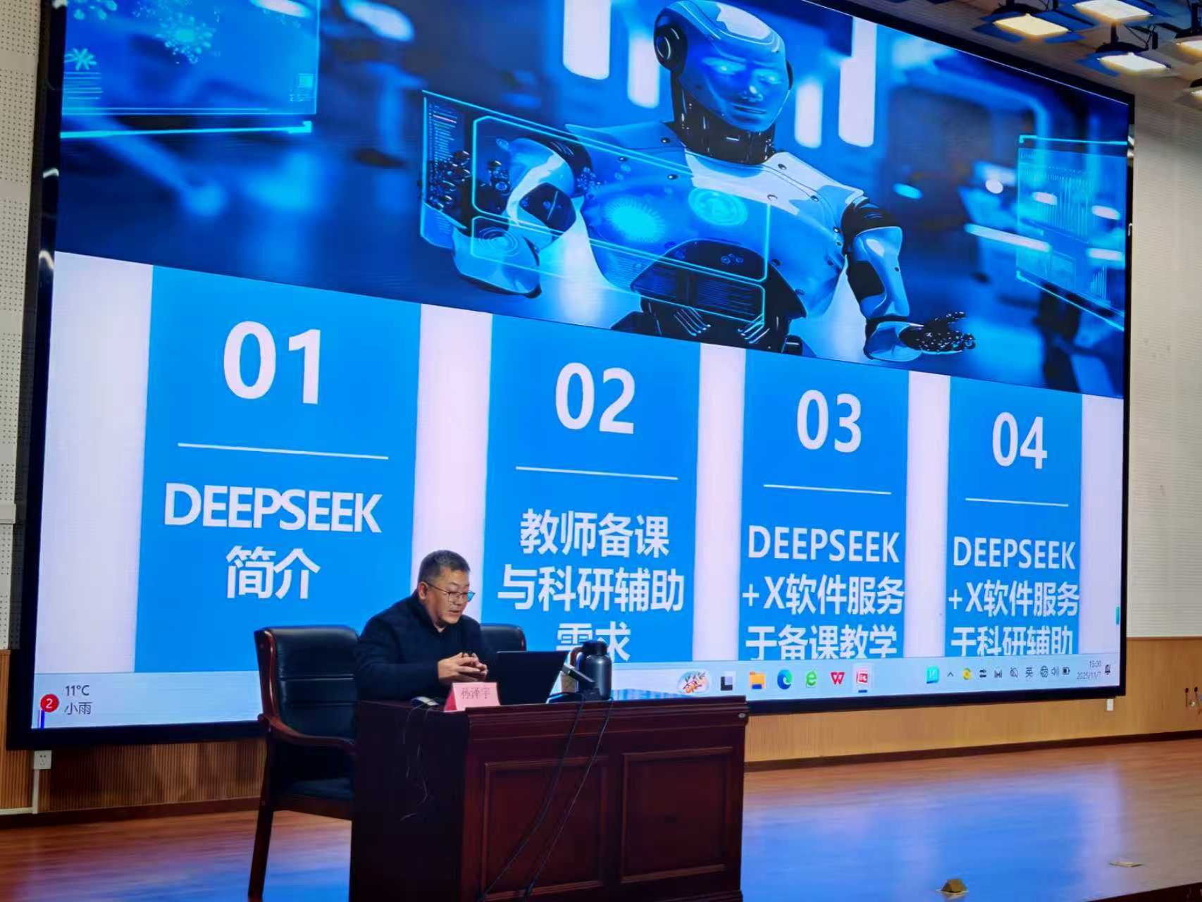 孙泽宇教授从DEEPSEEK简要介绍、教师备课与科研辅助需求、DEEPSEEK+X软件应用于备课教学、DEEPSEEK+X软件应用于科研辅助等方面,系统讲解了DEEPSEEK的基本原理、技术架构、核心能力以及教学科研领域的应用,并结合高校教育实际,深入剖析了当前教师在备课环节的资源整合、内容创新需求,以及科研过程中文献梳理、数据分析、研究框架搭建等核心痛点,为科研效率提升提供技术支撑。报告引发在场教师热烈反响,助力教师提升教学能力和科研水平,为培养适应时代需求的高素质人才、提升高等教育教学质量注入了新动力。