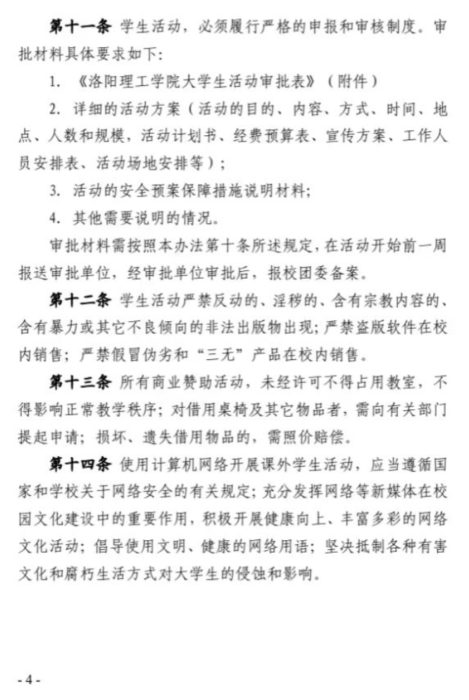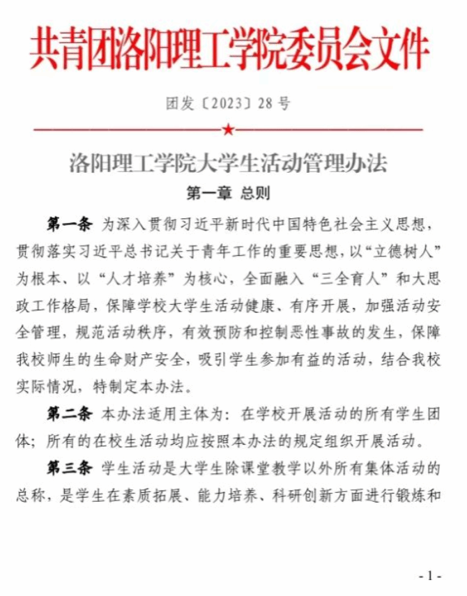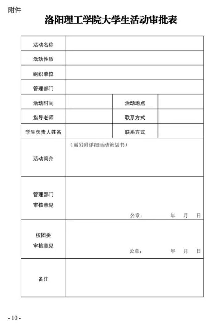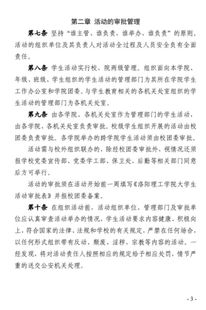 洛阳理工学院大学生活动管理办法