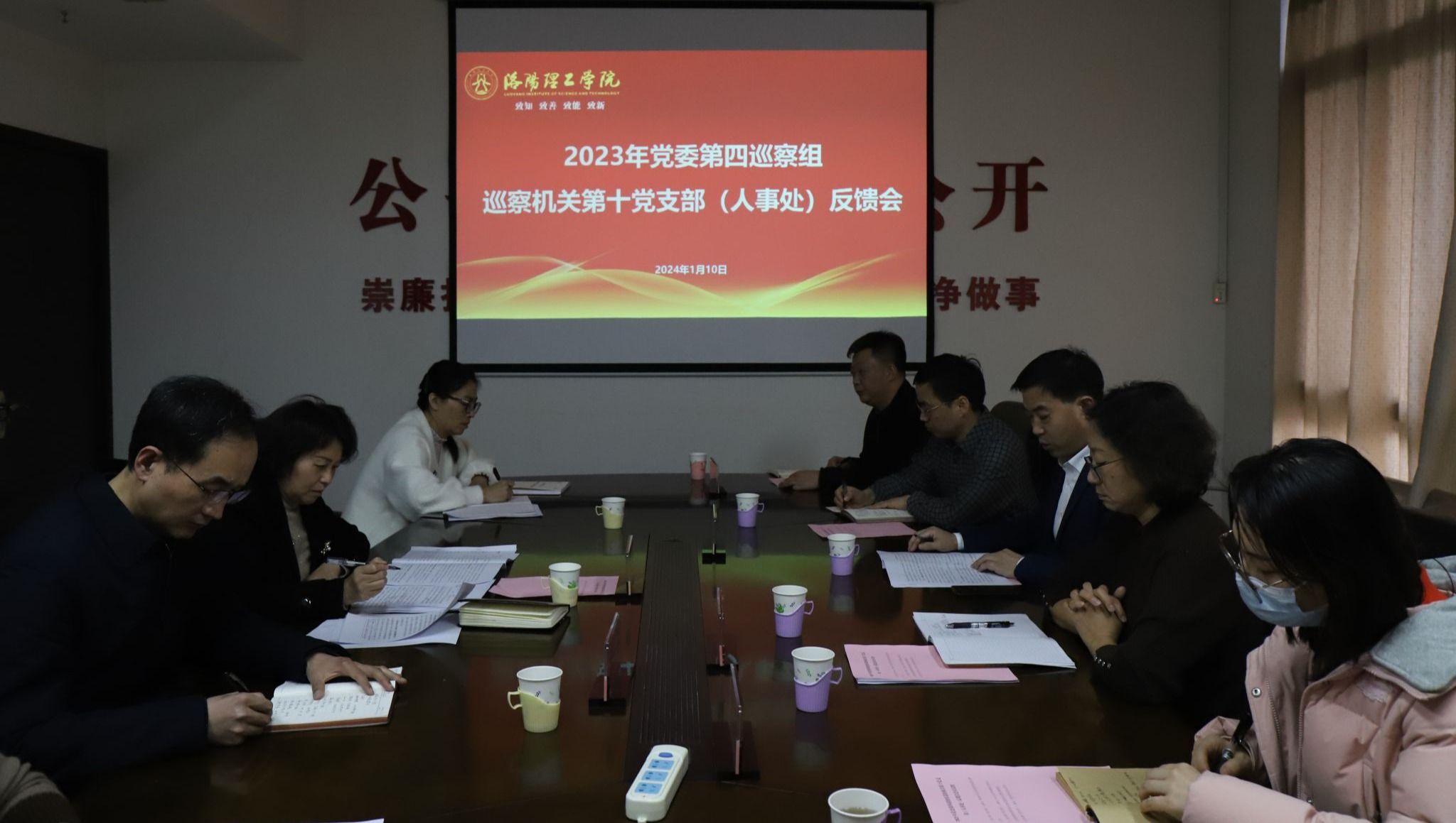 组织部部长戴建广、校巡察工作办公室副主任王继忠、第四巡察组全体成员出席会议,机关党委第十党支部全体党员干部参加了反馈会。