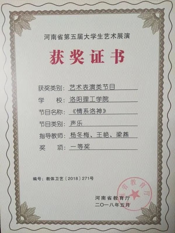 最终,女生表演唱河洛大鼓两次荣获河南省大学生艺术展演的金奖,并多次代表我校参加省、市级的演出,以优异的成绩为每个人交出了完美的答卷。