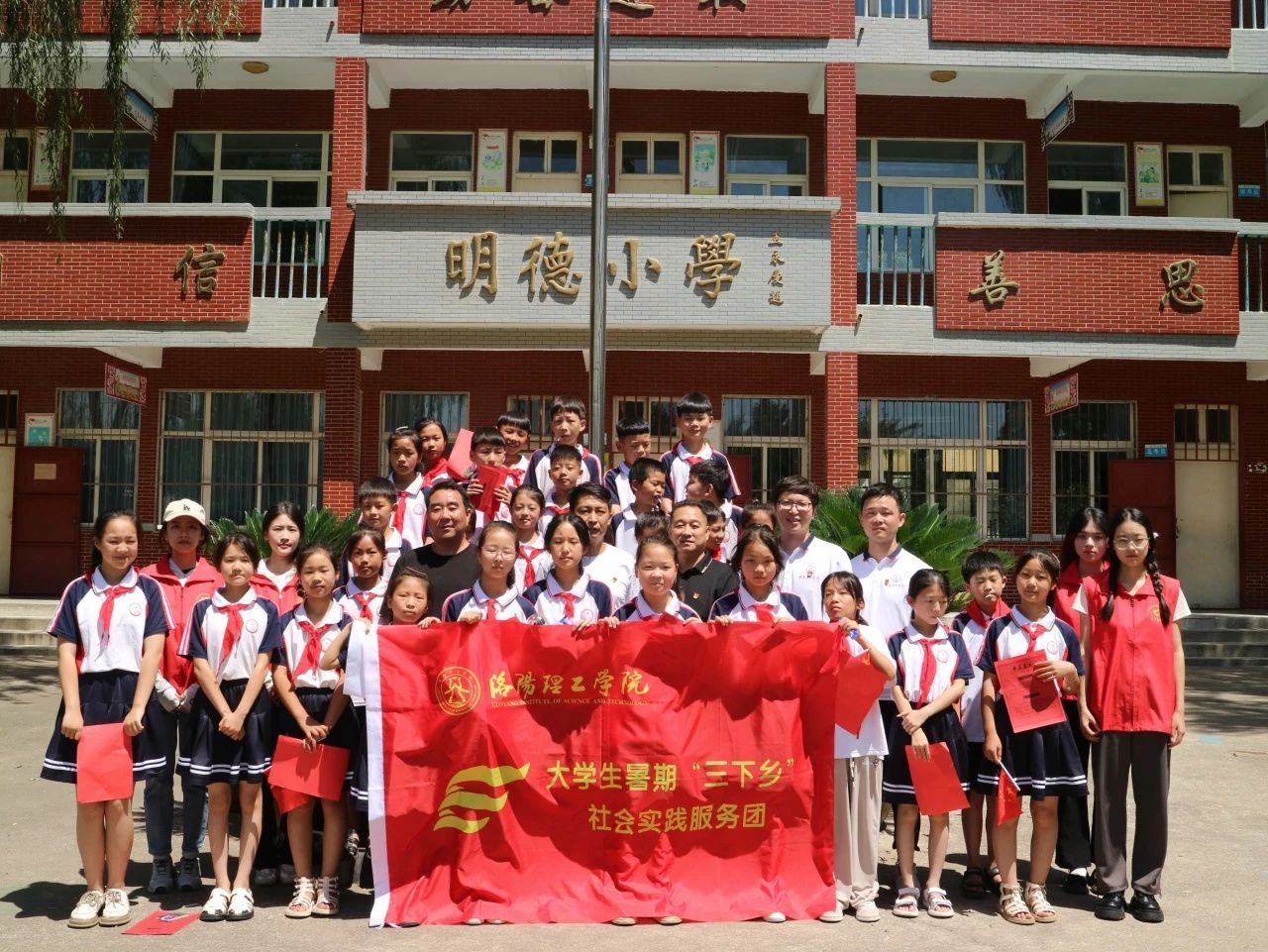 为深入学习宣传贯彻党的二十大精神,高质量推进学习贯彻习近平新时代中国特色社会主义思想主题教育,创新学习教育形式和载体,营造浓厚的学习氛围,切实推进党的二十大精神在基础教育中落地生根、开花结果。人文与社会科学学院“传播党的声音,弘扬党的精神”暑期社会实践团于2023年7月3日前往洛阳市宜阳县三乡镇明德小学开展党的理论精神普及宣讲活动。实践团以党的二十大知识、历届党代会知识和党的精神谱系等为内容,以学生们喜闻乐见的方式进行讲解,真正让学生听得懂、能掌握,引导学生们感悟思想伟力、凝聚奋进力量。
