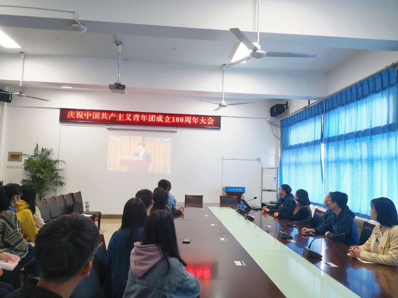 人文与社会科学学院于今日上午十点在BN507-1组织观看庆祝中国共产主义青年团成立100周年大会。参与人员有党委书记胡留现,党委副书记张正瑞,学工办主任丁惠玲,辅导员靳景、张静以及优秀学生代表。