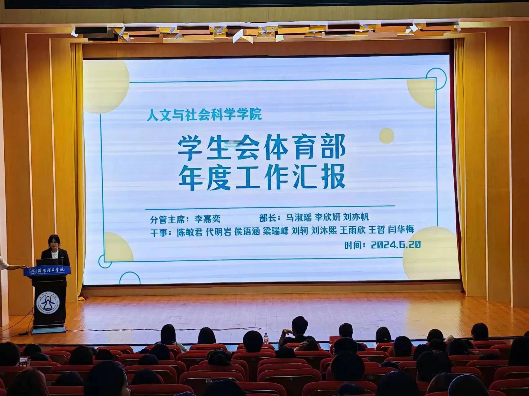 2024年6月20日16点30分,人文与社会科学学院于王城校区图书馆报告厅举行第十六届团委学生会总结大会。出席本次总结大会的有党委副书记张正瑞、学工办主任丁惠灵、团委副书记孙维艺、二级心理辅导站站长宋冰聪、辅导员王一如。团委学生会全体成员参与总结大会。