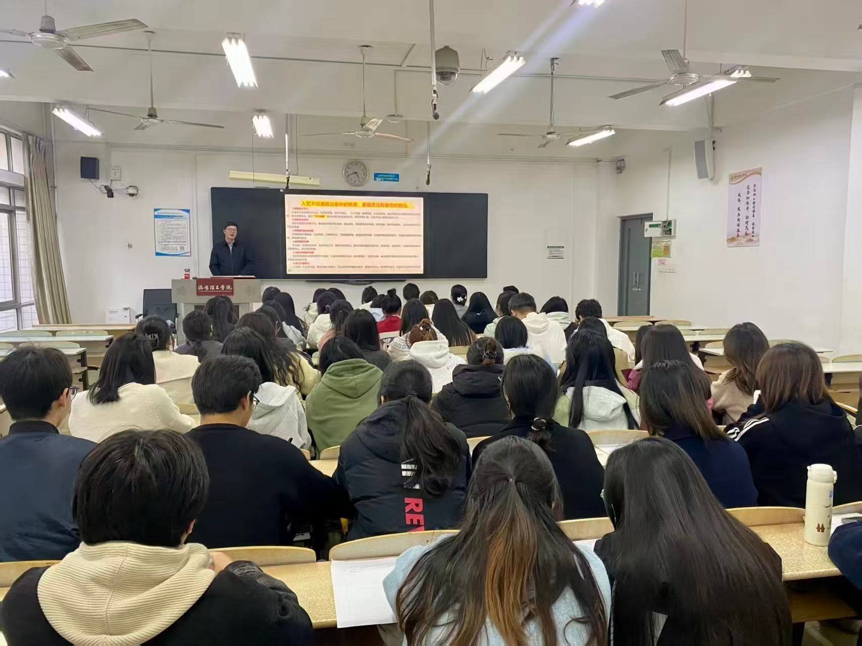 靳景围绕理想信念培育与党员发展程序两大核心内容,采用理论阐释与流程拆解相结合的授课方式,着力提升党的理论知识学习的实效性。党课开篇,靳景引导学员们深入思考“为什么要加入中国共产党”这一根本性问题。他强调,入党不仅是政治身份的转变,更意味着责任担当的进阶,每一位申请入党的同志都必须深刻认识到,加入党组织的本质要求,是始终践行“全心全意为人民服务”的根本宗旨。针对大学生入党积极分子群体,他提出明确期望:要持续强化理论武装,扎实筑牢专业基础,主动投身社会实践,积极发挥先锋模范作用,以持之以恒的奋斗姿态践行初心使命。