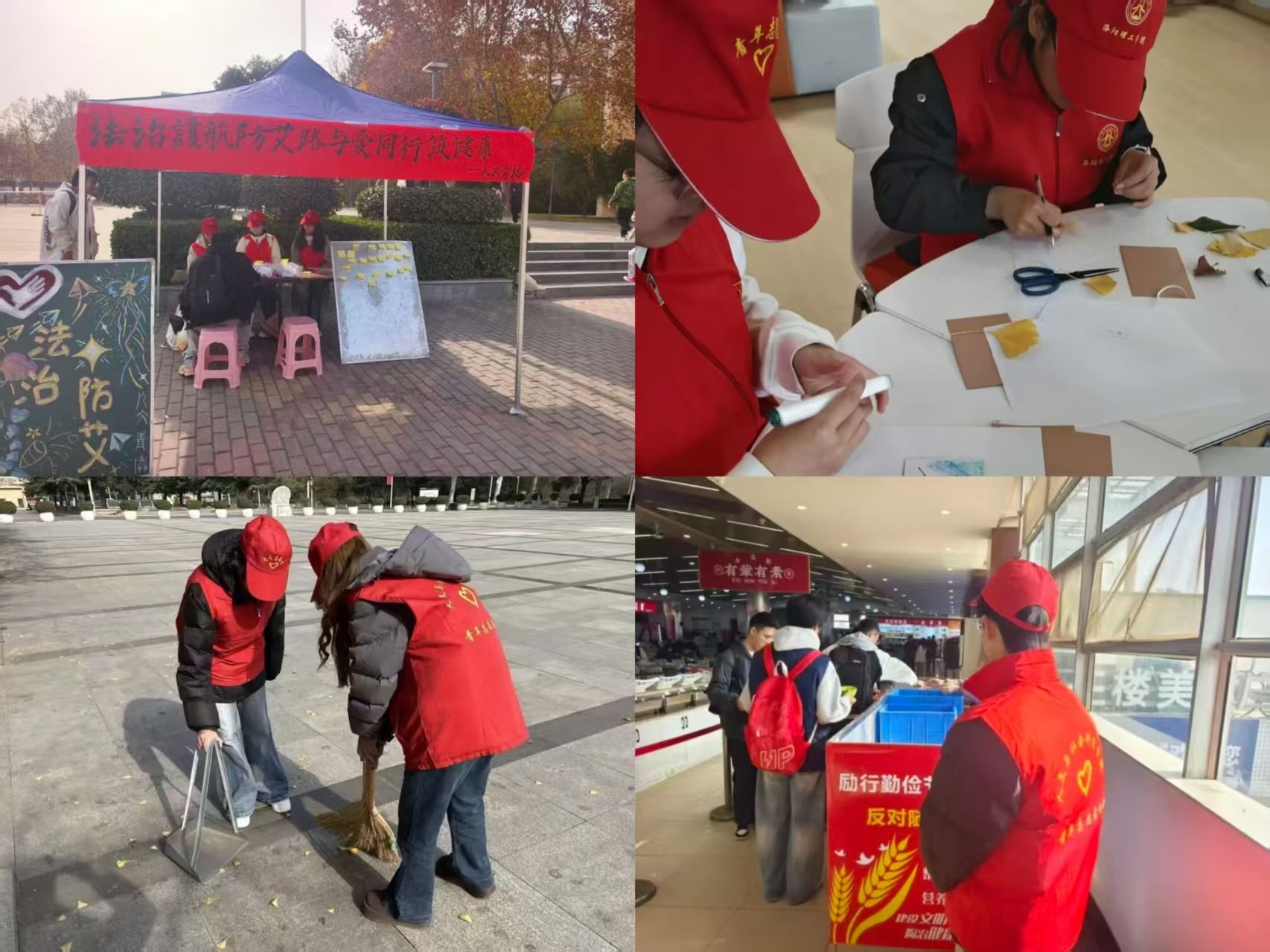 法治护航防艾路,温情筑牢健康墙。为依托法治框架深入推进防艾教育,以责任之心与关爱之情守护每一个生命,致新社区人文学院青年志愿者协会于12月1日在洛阳理工学院王城校区大学生服务中心前开展了“法治护航防艾路,与艾同行筑健康”宣传活动。