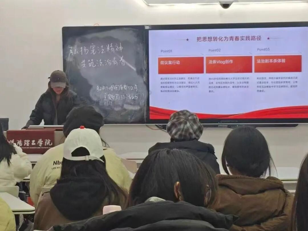B241109团支部于12月12日在王城校区AS405教室以“弘扬宪法精神,共筑法治青春”为主题开展团日活动。本次活动紧扣国家宪法日宣传教育要求,以“学习宪法知识、弘扬宪法精神、践行法治理念”为核心主线,团员青年们通过案例学习、互动问答,树立了“遇事找法、解决问题靠法”的行为习惯,以实际行动践行法治承诺,为建设社会主义法治国家注入青春动能。
