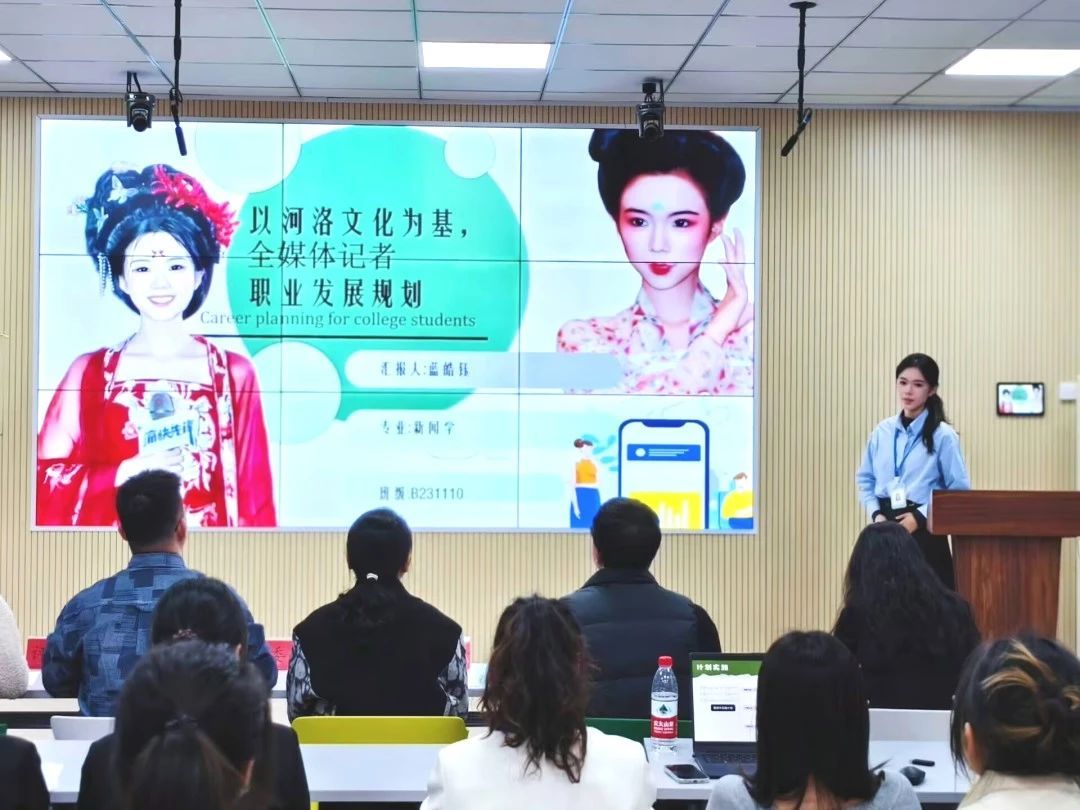 为增强大学生职业规划意识,以择业新观念打开就业新天地,促进高质量就业,致新社区人文与社会科学学院于2024年11月29日16时30分在王城校区BE301教室举行第二届全国大学生职业规划大赛院赛。学工办主任丁惠灵老师、团委副书记孙维艺老师、辅导员靳景老师、杨延松老师和2023届全国大学生职业规划大赛省银奖获得者郑雅文同学担任本次大赛评委。