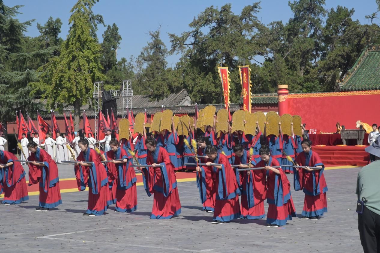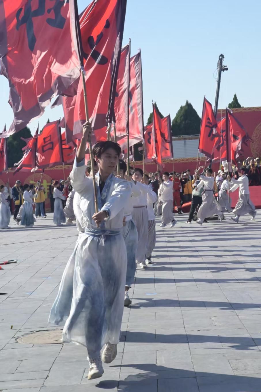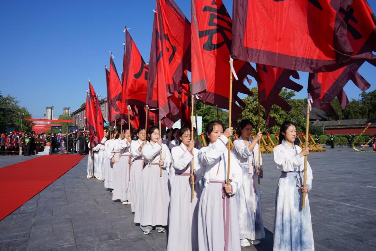 他们身姿挺拔,如挺拔的青松,手中的红旗整齐排列,成为大典现场一道独特的背景。红旗迎风招展,猎猎作响,与现场庄重的氛围相互映衬,既展现出青春的活力,又为这场文化盛事增添了一抹鲜艳的色彩,默默守护着大典的进行,仿佛是传统文化的忠诚卫士。