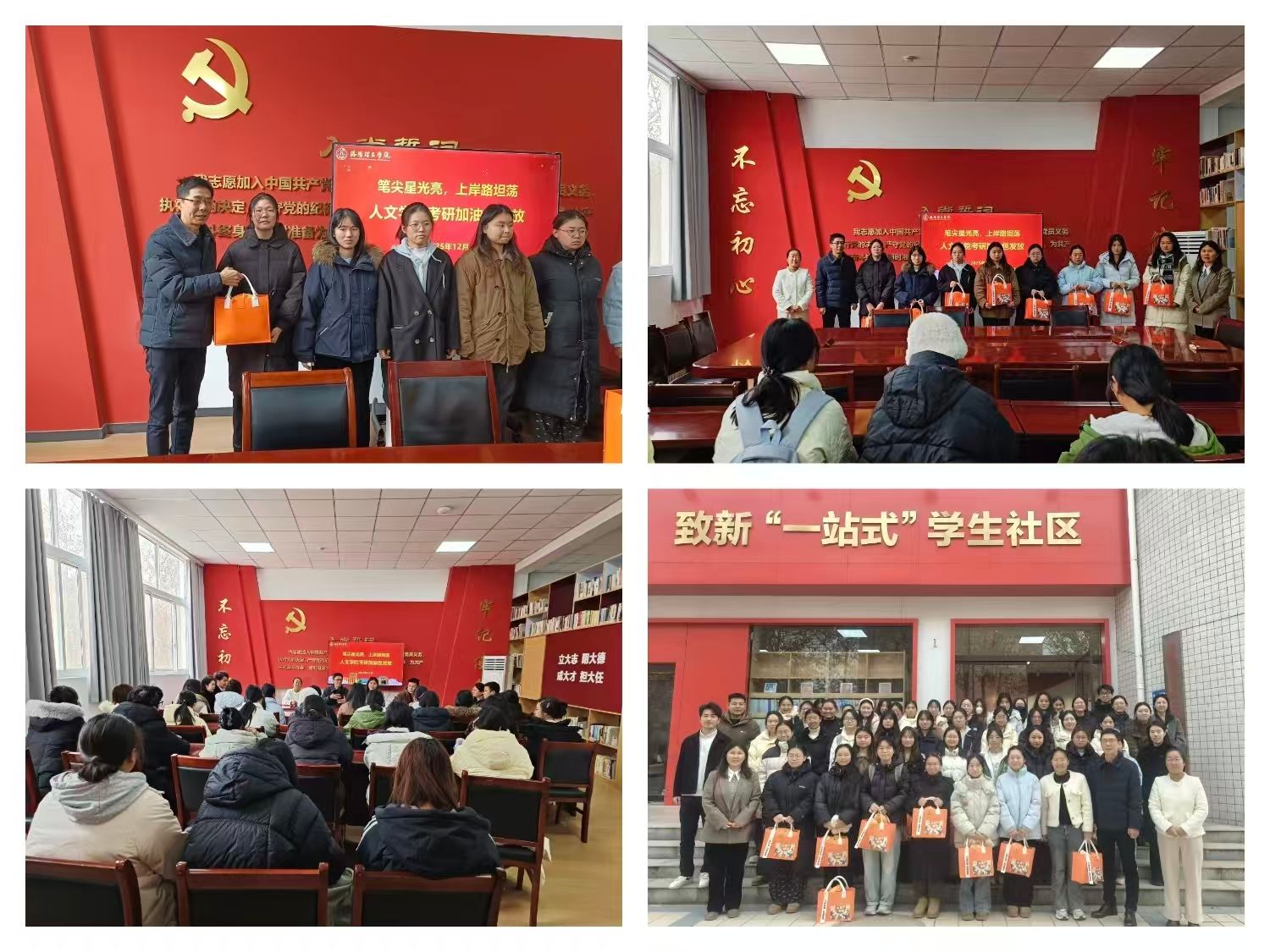 为切实缓解2026届考研学子的压力,关怀其生活,传递学校和学院的殷切期望和鼓励,12月9日,致新社区人文学院开展“考研大礼包”发放活动,为即将奔赴考场的考研学子送上温暖关怀与诚挚祝福。人文学院党委书记张正瑞、党委副书记孙利丹、副院长陈朝阳、毕业班辅导员共同参与,与考研学子面对面亲切交流,分享备考经验,提振备考士气,活动现场暖意融融、氛围浓厚。