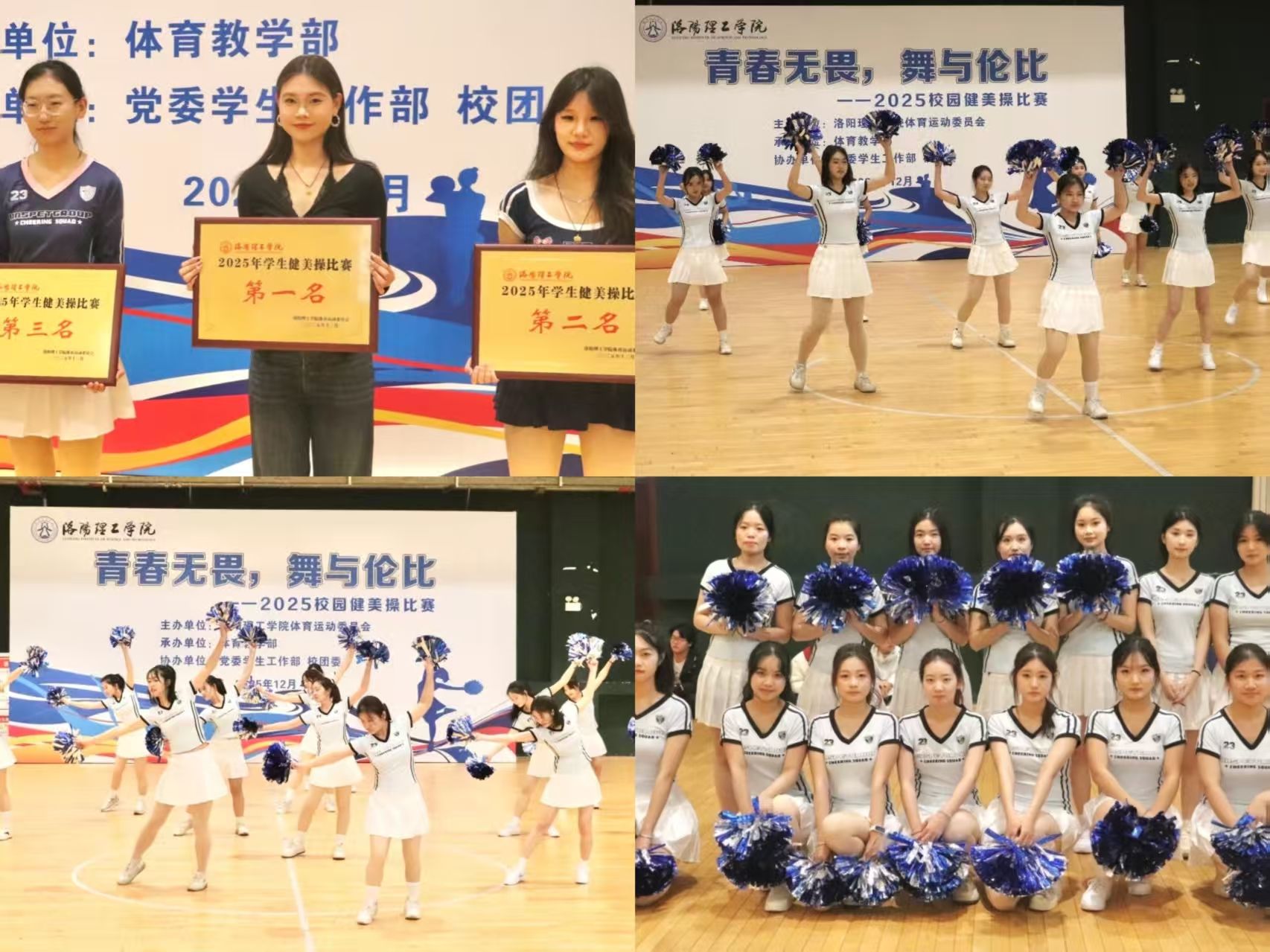 为增强大学生身体素质,丰富校园文化生活,营造积极向上的校园氛围,洛阳理工学院于12月11日在王城校区体育馆一层举办“青春无畏,舞与伦比”健美操比赛。经过激烈地角逐,我院学子凭借默契的团队配合与充满活力的精彩演绎脱颖而出,斩获大赛第一名,展现了我院学子昂扬向上的精神风貌。