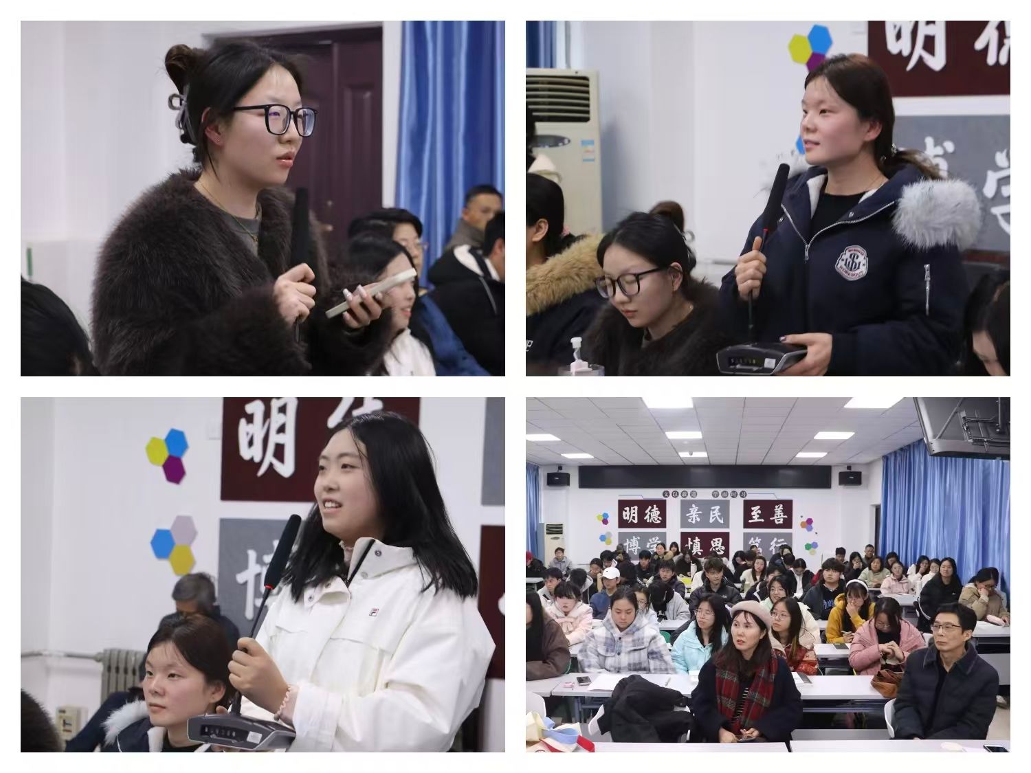 讲座最后,马海亭耐心解答了同学们的踊跃提问,对大家深入思考、积极探索的学习态度给予充分肯定。他分享了家乡一处亭子上的楹联“天下事要大处着眼小处着手,人间情谊群居收口独居守心”,寄语同学们既要胸怀大局、脚踏实地,也要坚守本心、涵养品格,努力成长为民族复兴的栋梁之才。