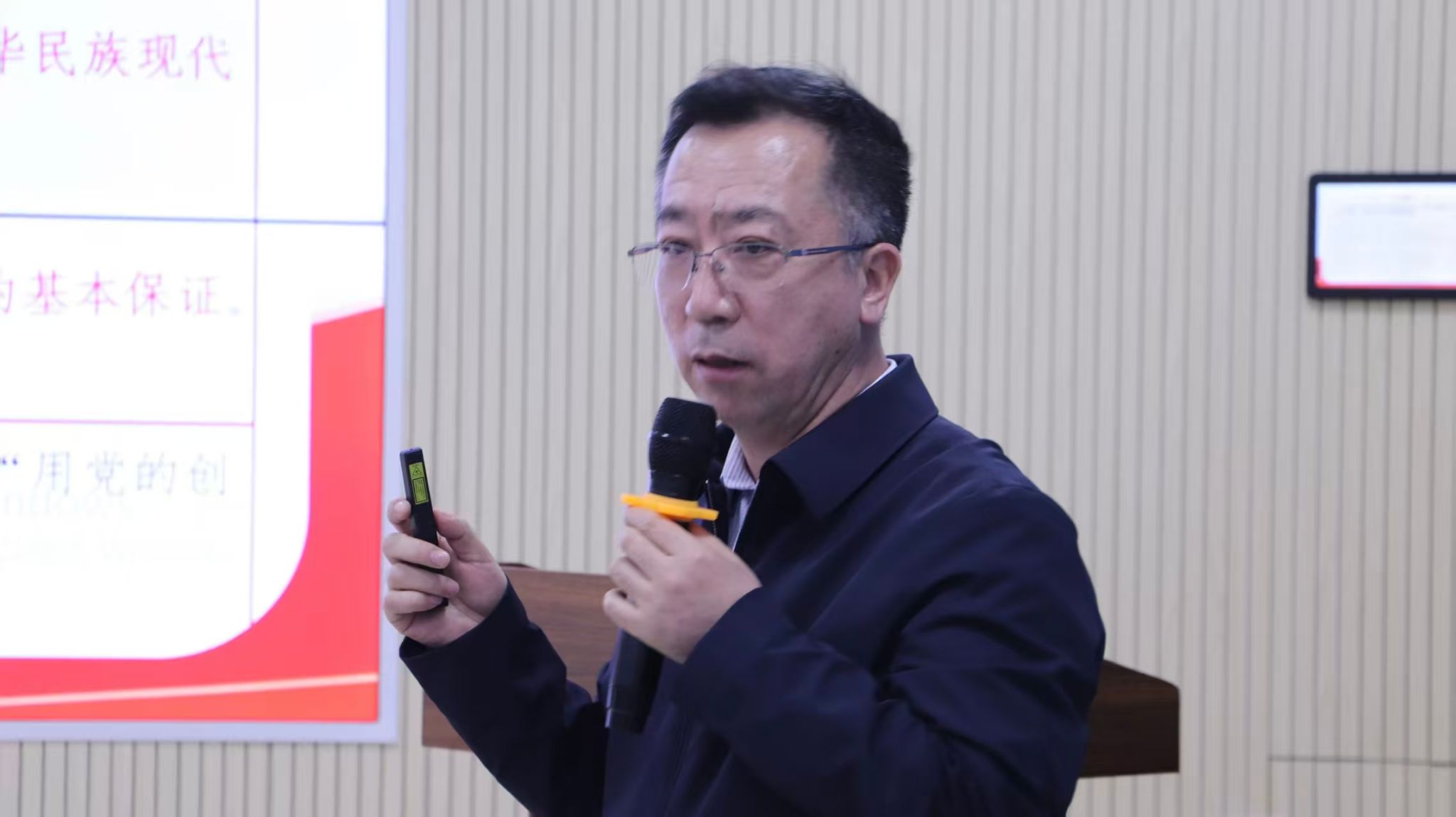 讲座伊始,马海亭从习近平新时代中国特色社会主义思想切入,系统梳理了“十个明确”“十四个坚持”“十三个方面成就”以及“六个必须坚持”的核心内容,帮助同学们理清思想脉络,深化对习近平新时代中国特色社会主义思想的理解与认知。