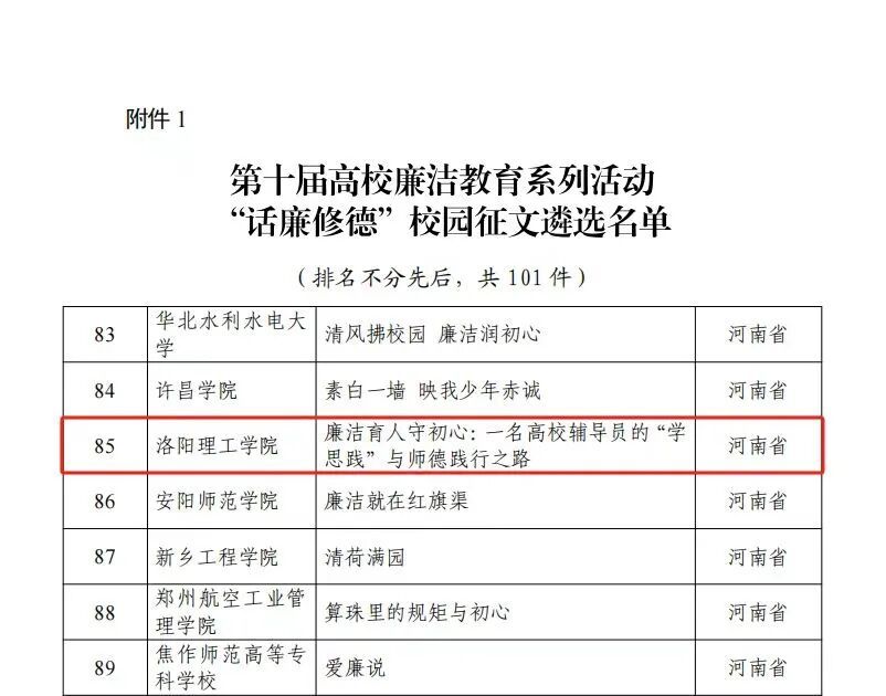 近日,教育部发布《关于第十届高校廉洁教育系列活动结果的公示》,我院辅导员杨延松撰写的《廉洁育人守初心:一名高校辅导员的“学思践”与师德践行之路》成功入选“话廉修德”校园征文优秀作品名单。