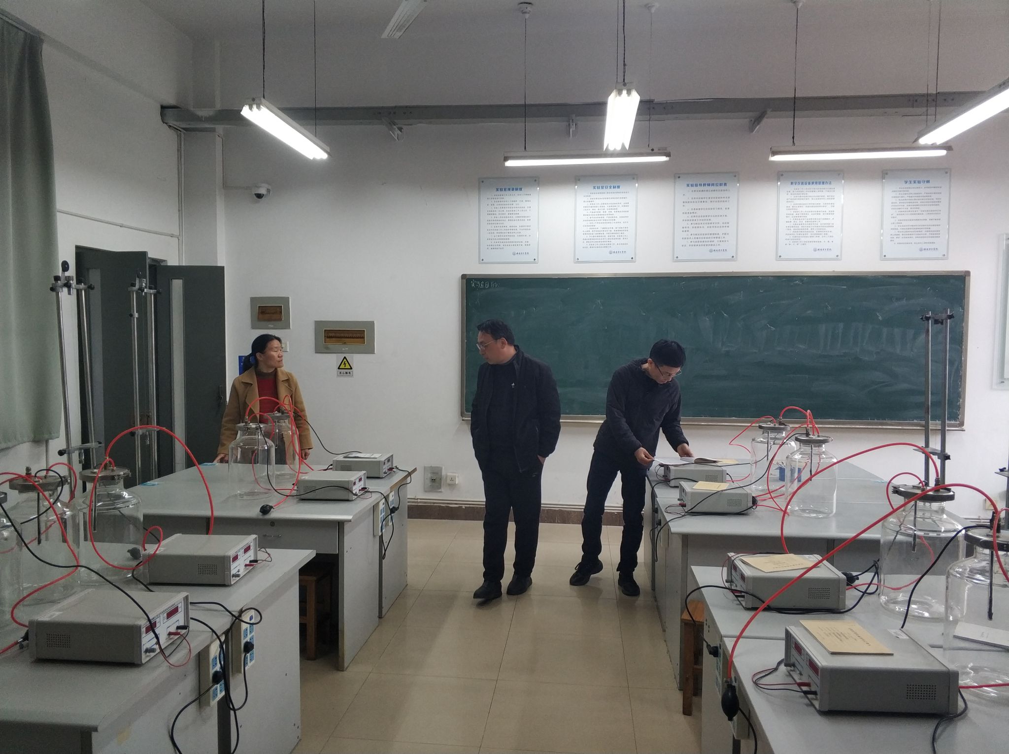 为确保新学期教学科研工作平稳有序运行,进一步夯实实验室安全管理基础,3月10日下午,数学与物理教学部主任唐春娟,副主任许超、童新安一行深入物理实验中心各实验室及博士科研实验室,对学期初各项教学科研准备工作进行全面检查。