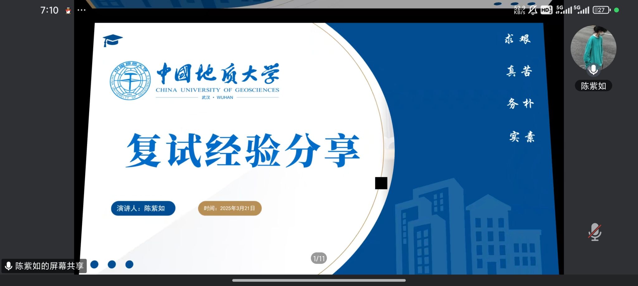 交流会上,冯宇飞学长详细讲解了考研复试的流程、注意事项以及备考策略。陈紫如学姐结合自身经验,从专业课复习、英语口语表达、面试技巧等方面进行了深入浅出的讲解,并鼓励大家积极与导师沟通,展现自身优势。汤玲玲学姐提示同学们要提前了解目标院校的复试要求,做好充分准备,建议同学们要拓宽信息渠道,积极关注调剂信息,争取更多机会。交流会上,与会2025级考研同学就个人准备复试中的具体问题与学长、学姐进行了深入交流沟通。与会同学纷纷表达了对学长学姐的感谢,整个交流会在轻松愉悦的氛围中结束。