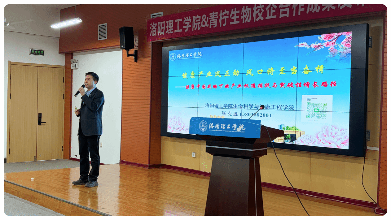 洛阳理工学院生命科学与健康工程学院院长张克胜、河南青柠生物科技有限公司创始人王家全出席并分别致辞,双方对此次校企合作的阶段性成果给予高度评价。张克胜以《健康产业风正劲,风口将至当奋楫——健康中国战略下的产业机遇捕捉与突破性增长路径》为题作主旨发言,深度剖析健康产业发展趋势,为校企后续合作及产业协同发展指明方向。