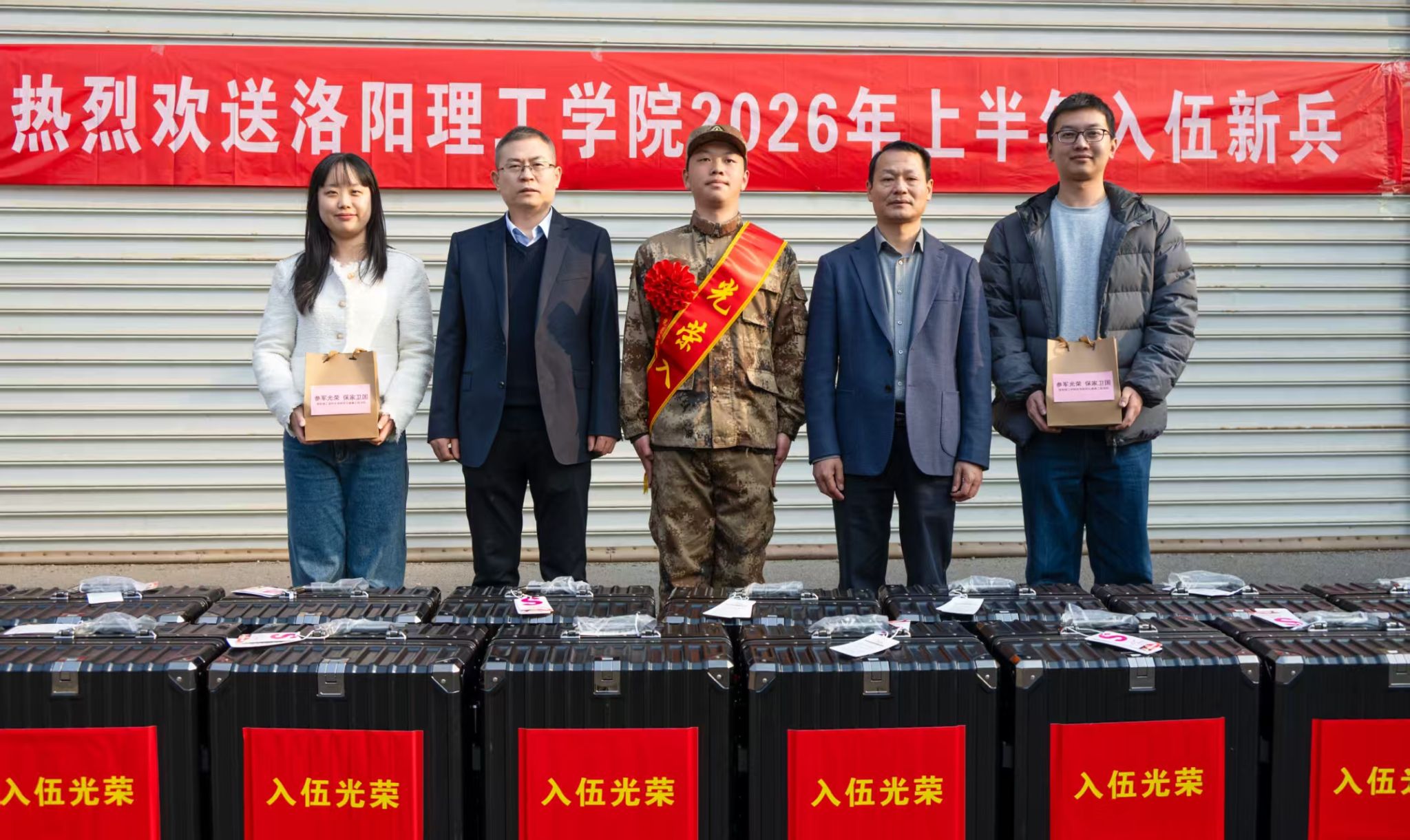 李传锋、杨勇与我院入伍学生代表合影留念,勉励学生进一步增强家国情怀,增强保家卫国的担当,并叮嘱他们严守纪律、刻苦锤炼,积极在军营成长成才,展现洛阳理工学子良好精神风貌,为学校增光添彩。入伍学生辅导员任宣睿、丁国钊与入伍学子亲切交流,叮嘱他们注意安全、安心服役,主动适应军营生活、积极迎接军营挑战,同时代表学院送上生活日用品,传递温暖与牵挂。