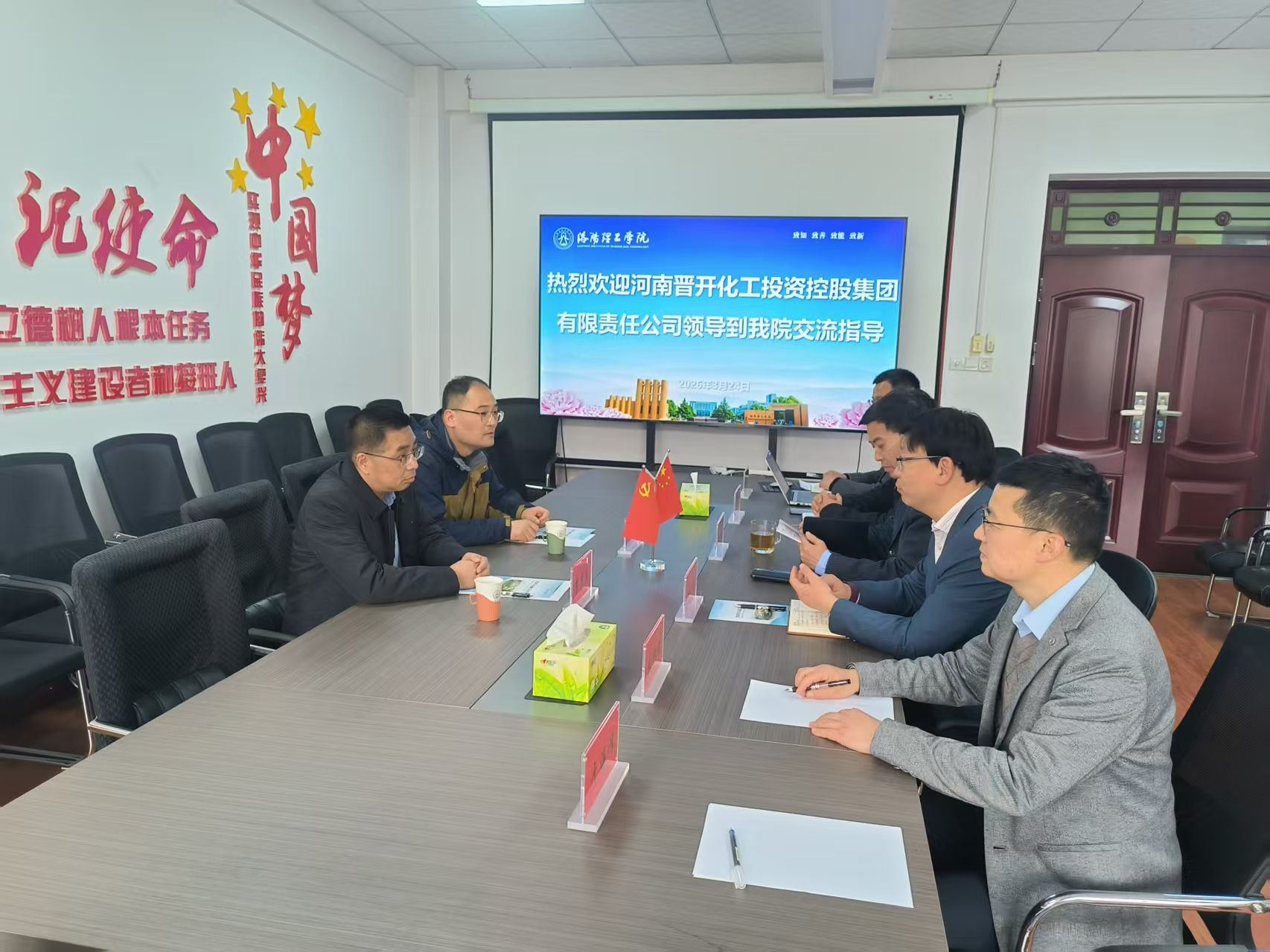3月24日下午,河南晋开化工投资控股集团有限责任公司(以下简称简称“河南晋开集团”)晋开集团副总经理李昱东、人力资源处招聘负责人姬忠嘉到我院开展交流洽谈,学院党委副书记张荣、院长张克胜带领学院领导班子成员、相关专业教师参加交流洽谈,应用化学专业全体应用化学专业毕业生参加招聘宣讲活动。