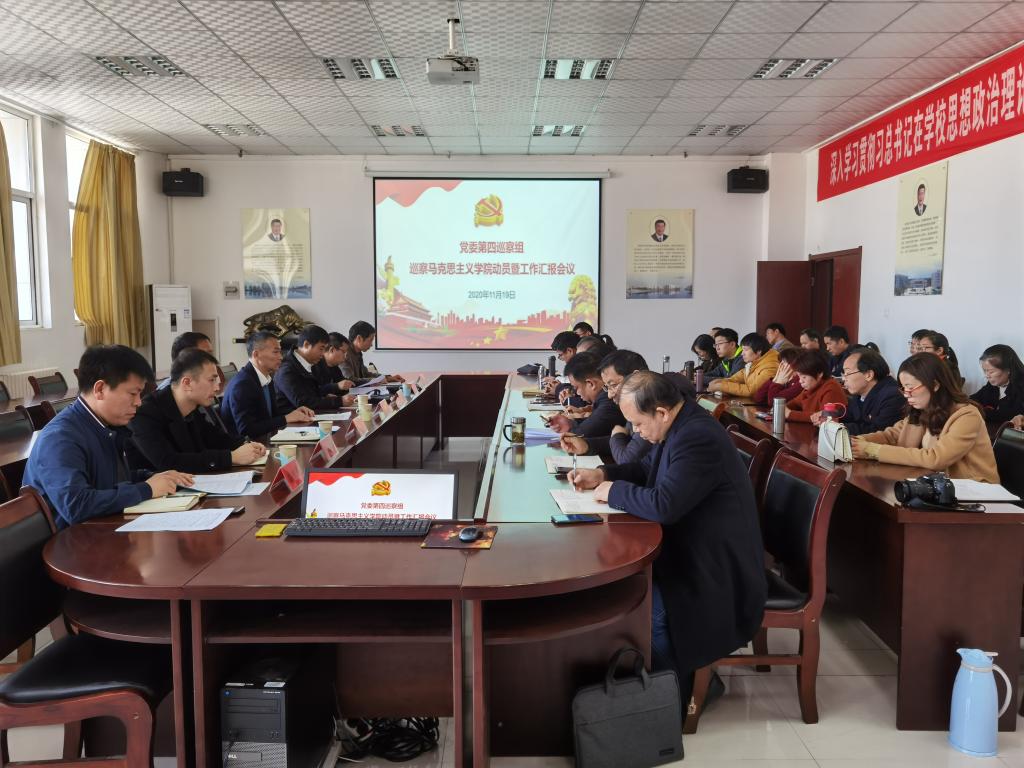2020年11月19日下午,校党委第四巡察组巡察马克思主义学院动员暨工作汇报会在马克思主义学院会议室召开。校党委副书记、工会主席曾涛,校党委第四巡察组组长张克胜,副组长李绍辉以及巡察组其他成员出席会议。马克思主义学院班子成员、科级干部、党支部书记、教研室主任、高级职称教师、博士、非党员教师代表参加会议。会议由马克思主义学院院长苗国强主持。