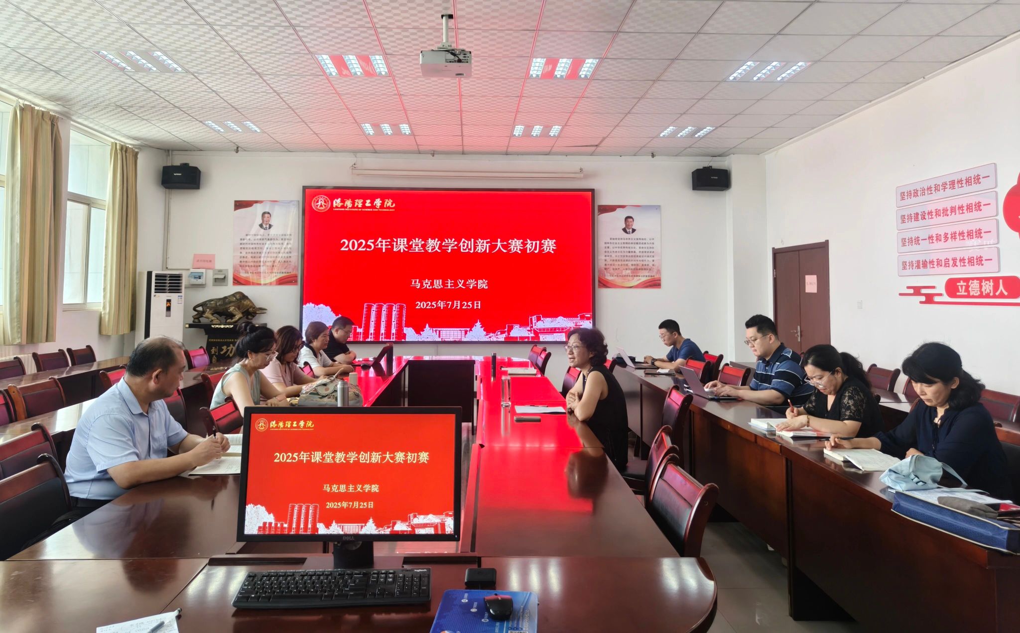 为进一步深化教育教学改革,激发课堂教学创新活力,推动思政课建设内涵式发展,7月25日上午,我院举行2025年课堂教学创新大赛初赛,学院教学指导委员会成员参加观摩并做具体指导。